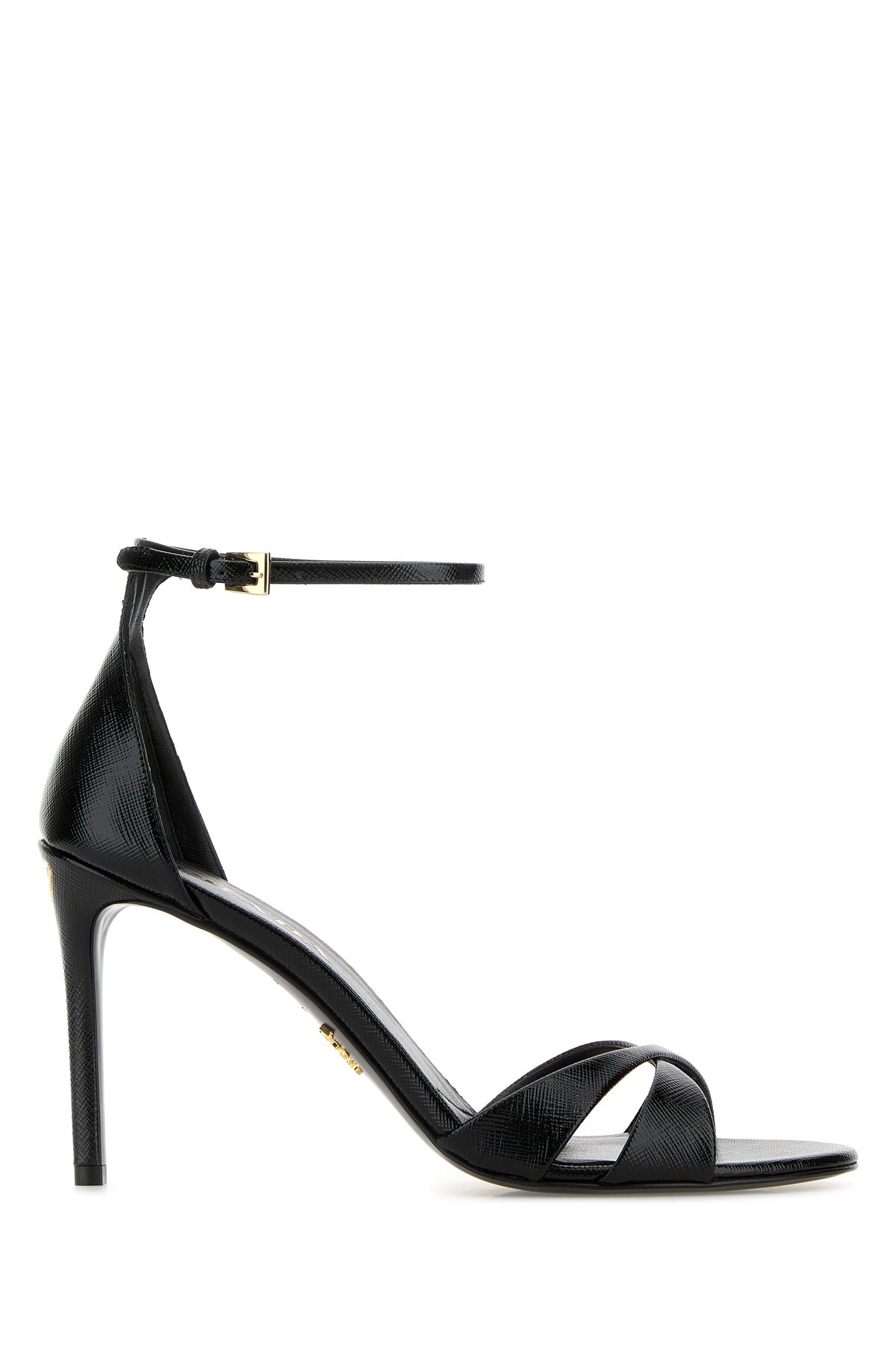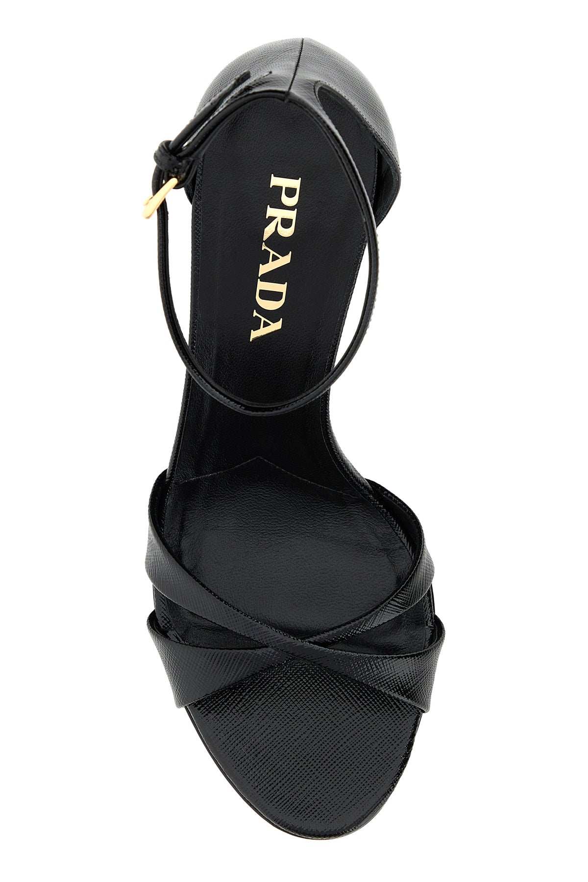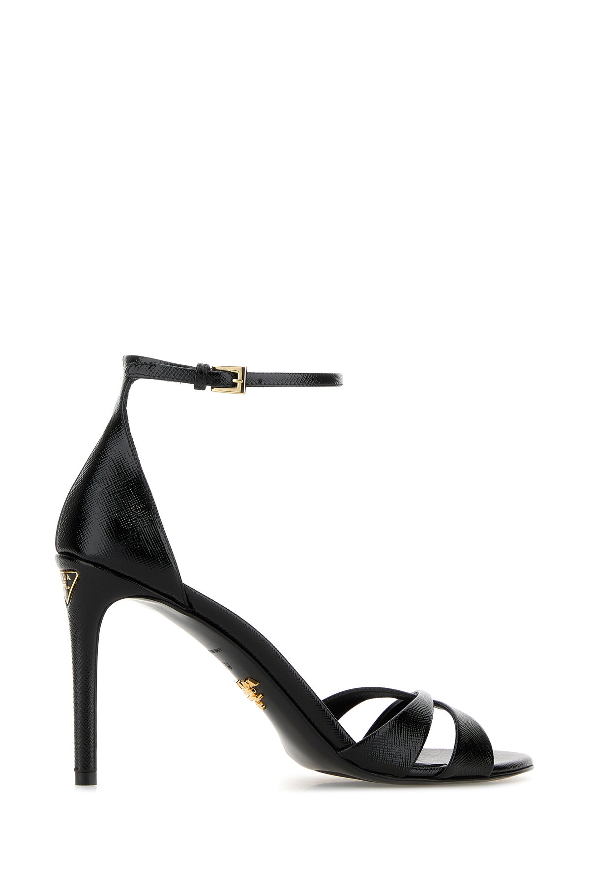 Sandals realized in polished-finish grained leather enriched by metal iconic logoed triangle at the back.