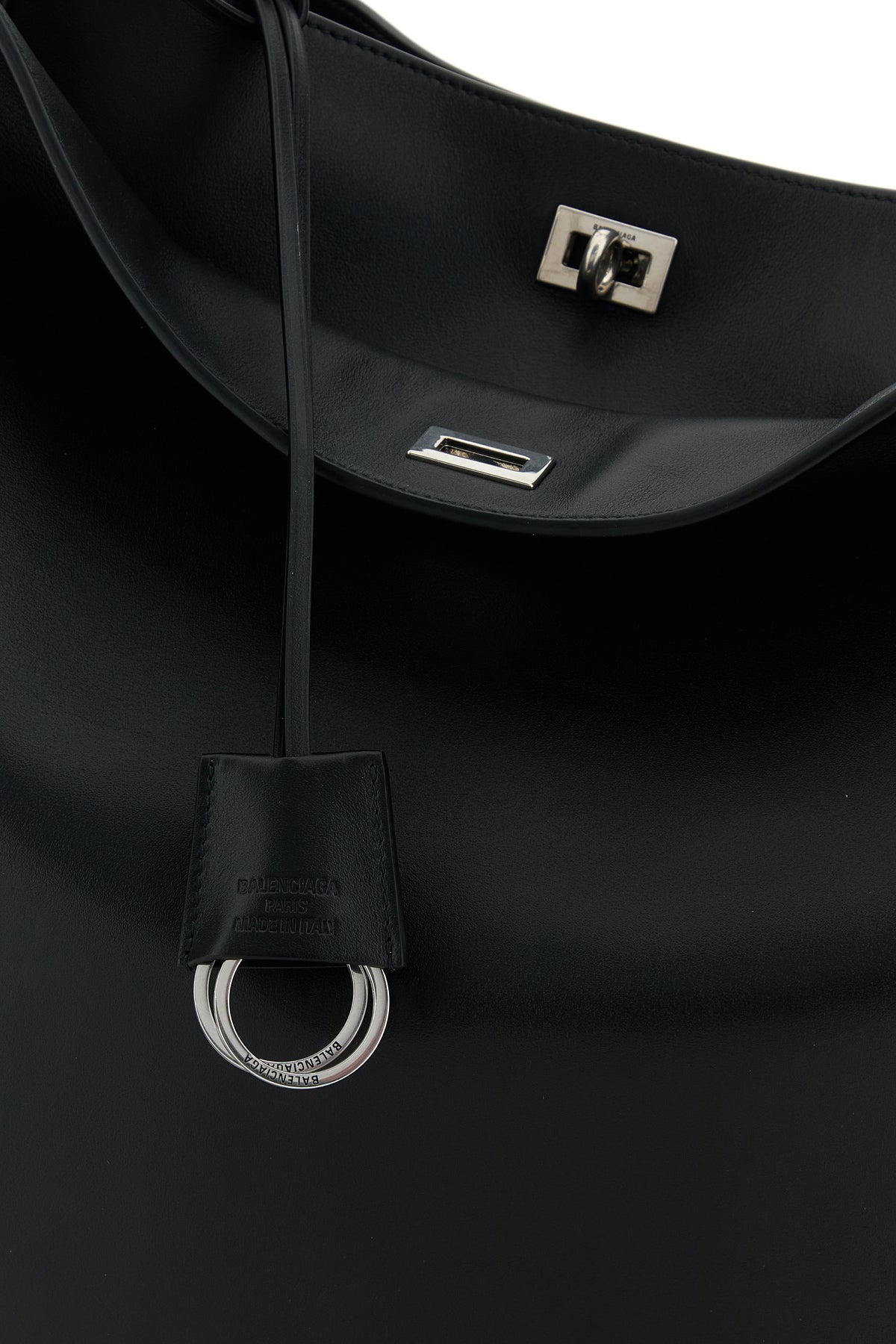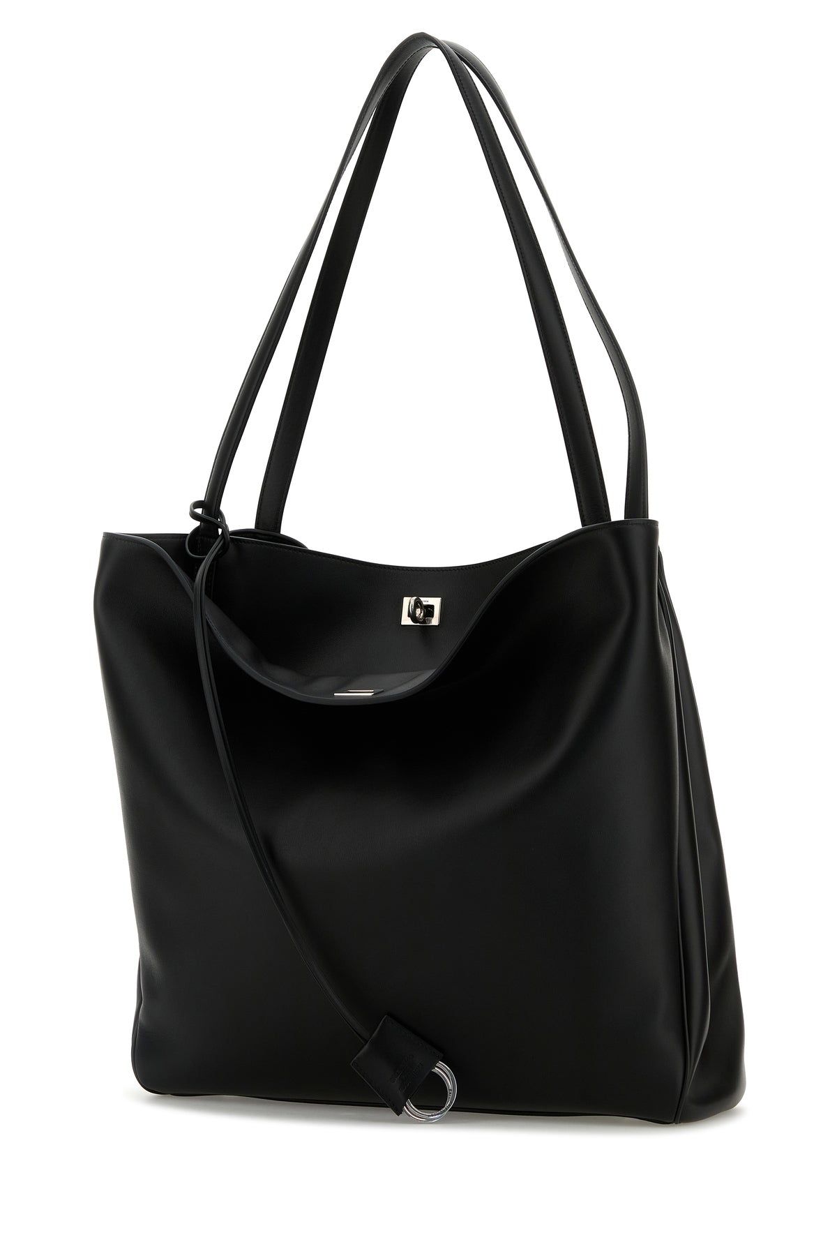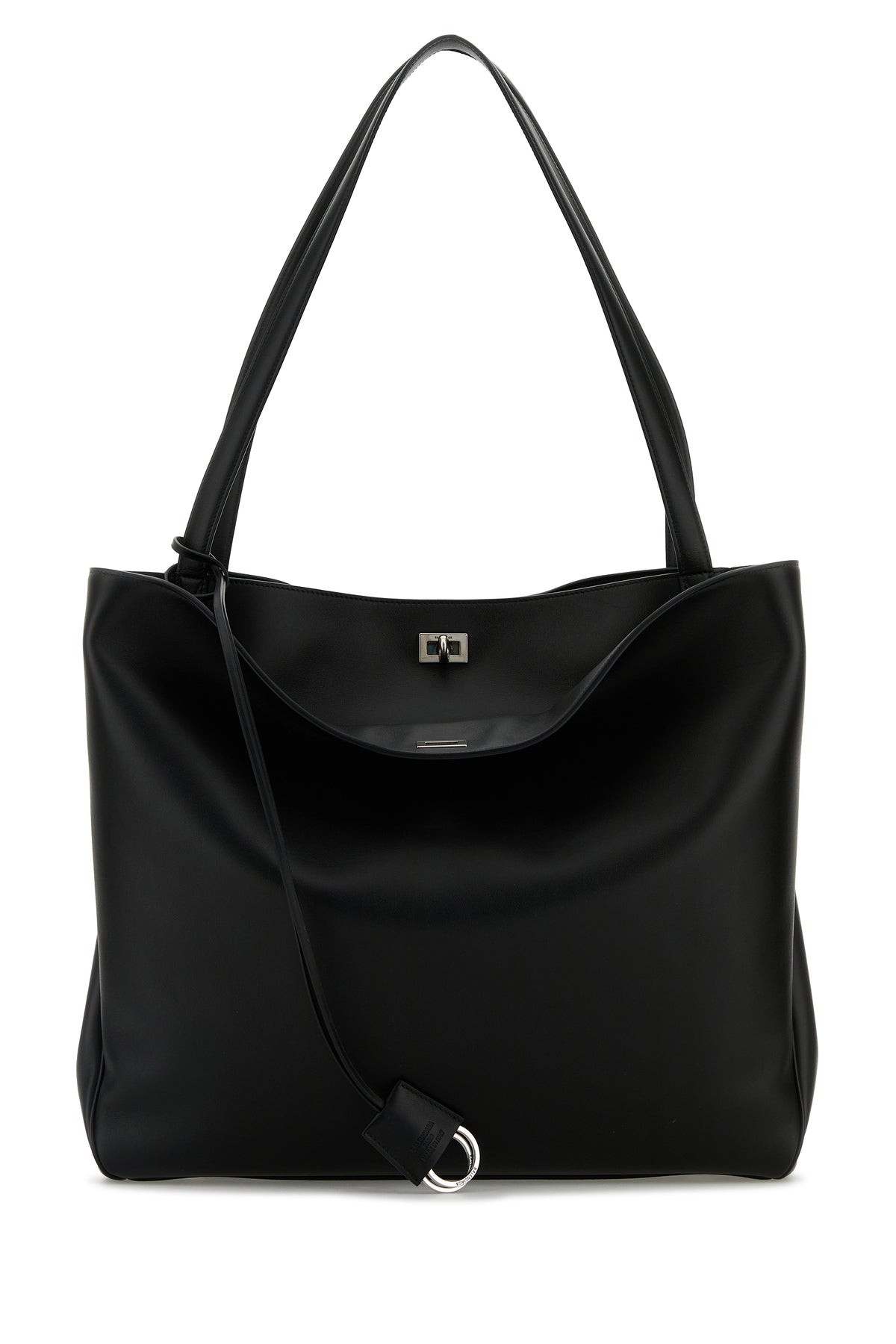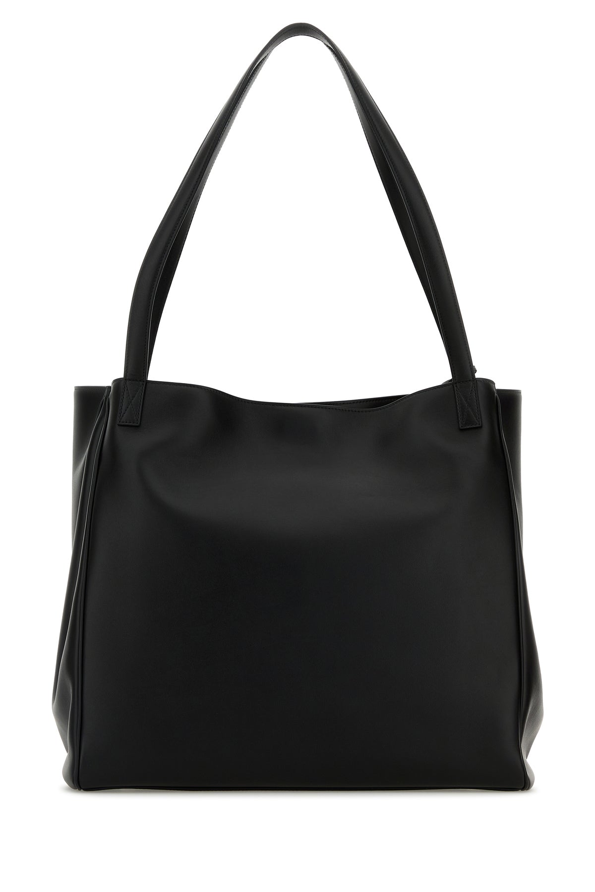 Shopping bag realized in calf leather enriched by detachable leather keychain accessory.