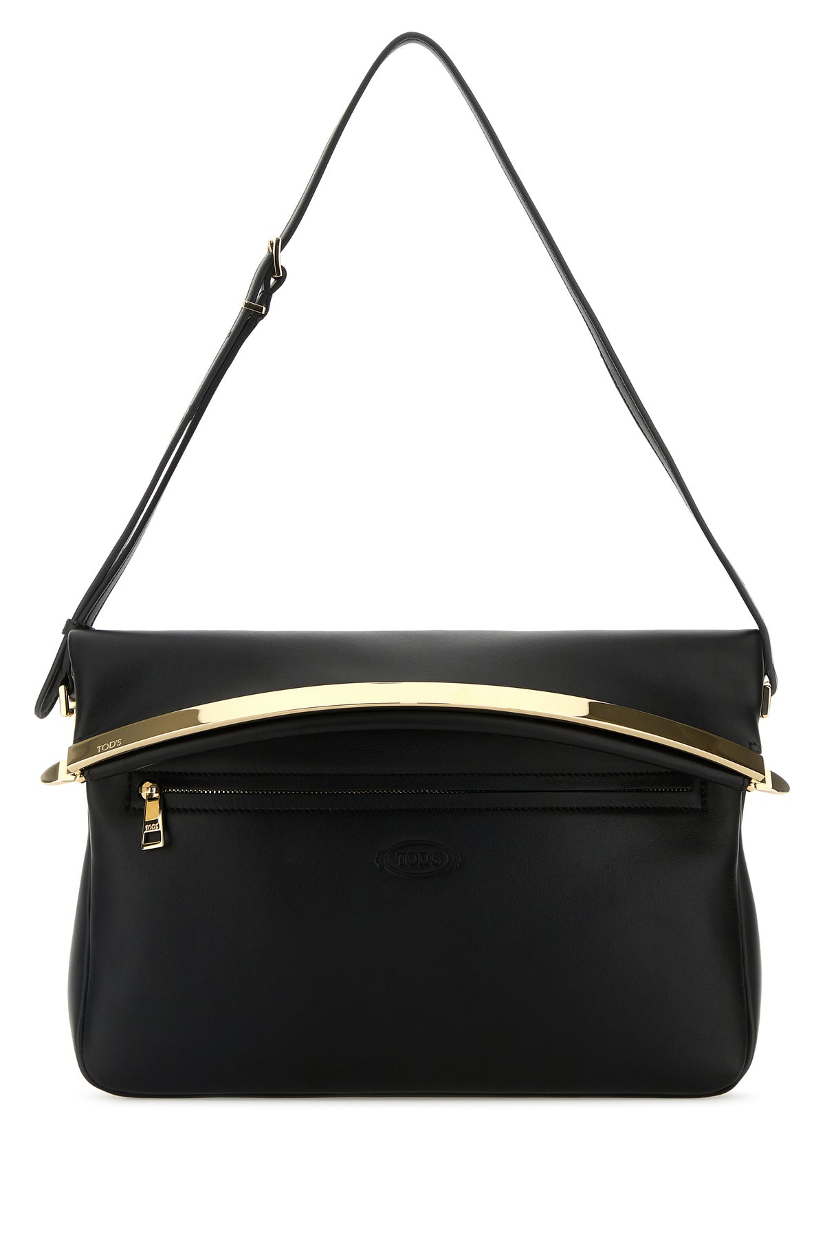 Shoulder bag realized in slightly pebble leather characterized by embossed logo at the front.