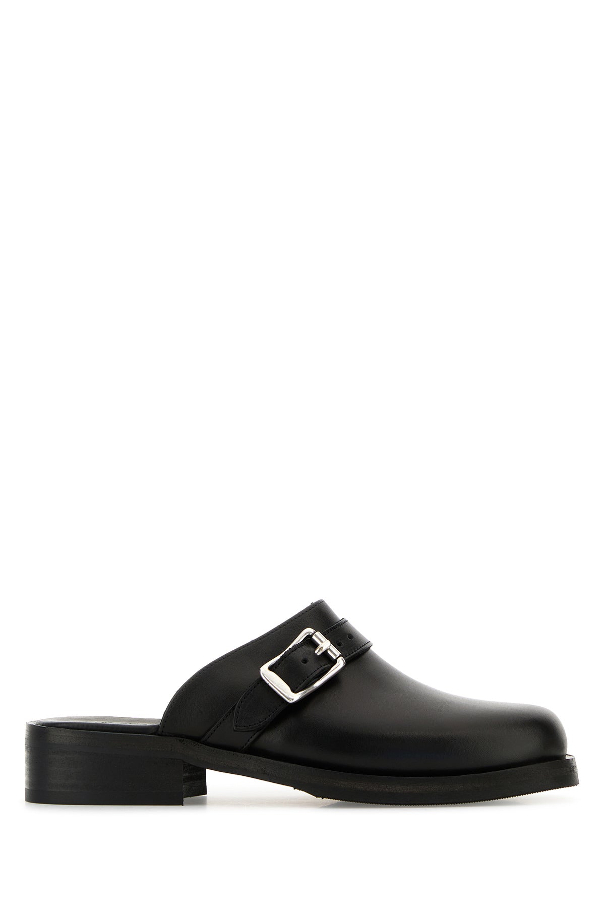 Slippers realized in smooth leather enriched by decorative leather strap on the instep.