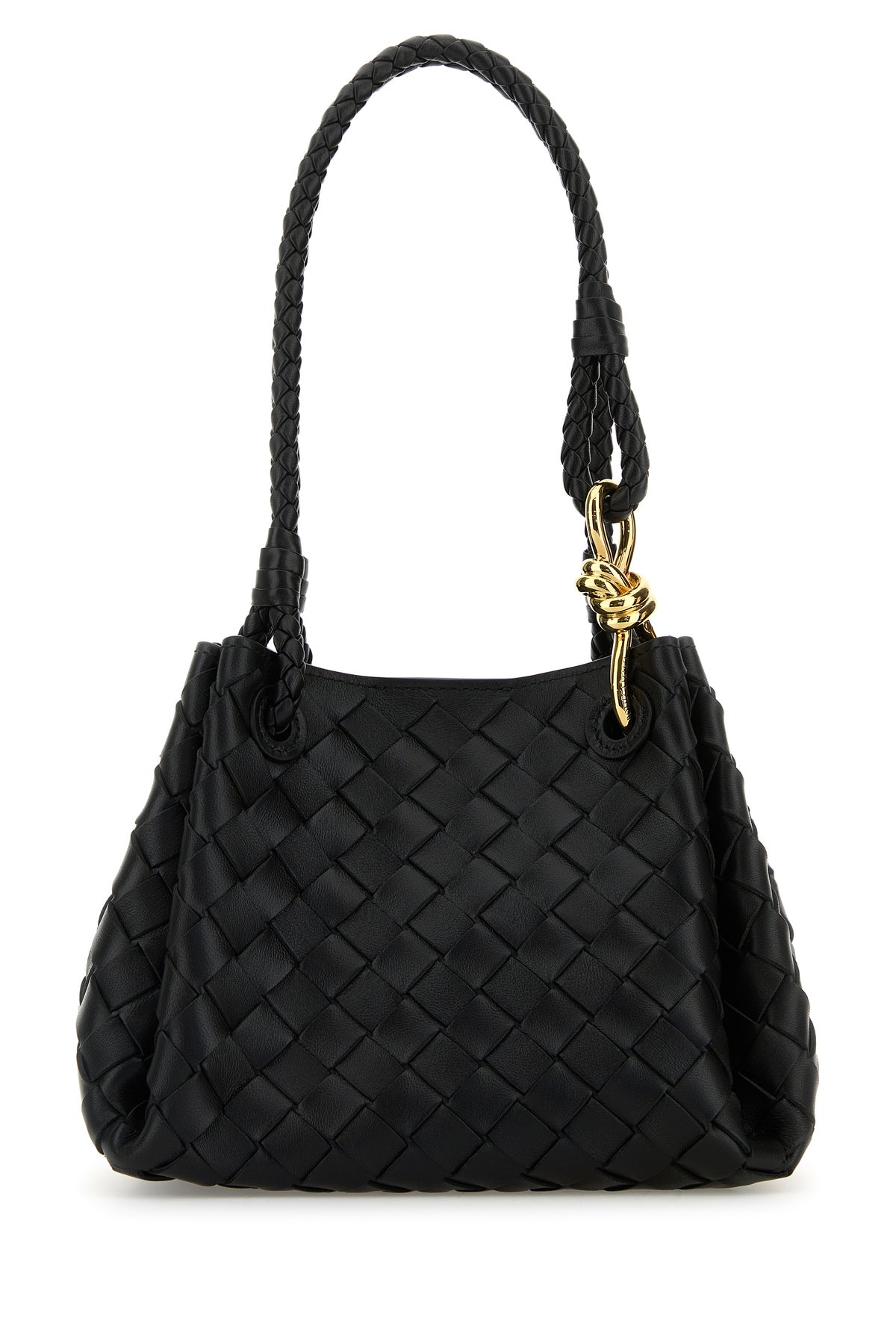 Handbag realized in lamb leather characterized by iconic Intrecciato motif on the entire surface enriched by metal Knot detail at the front.