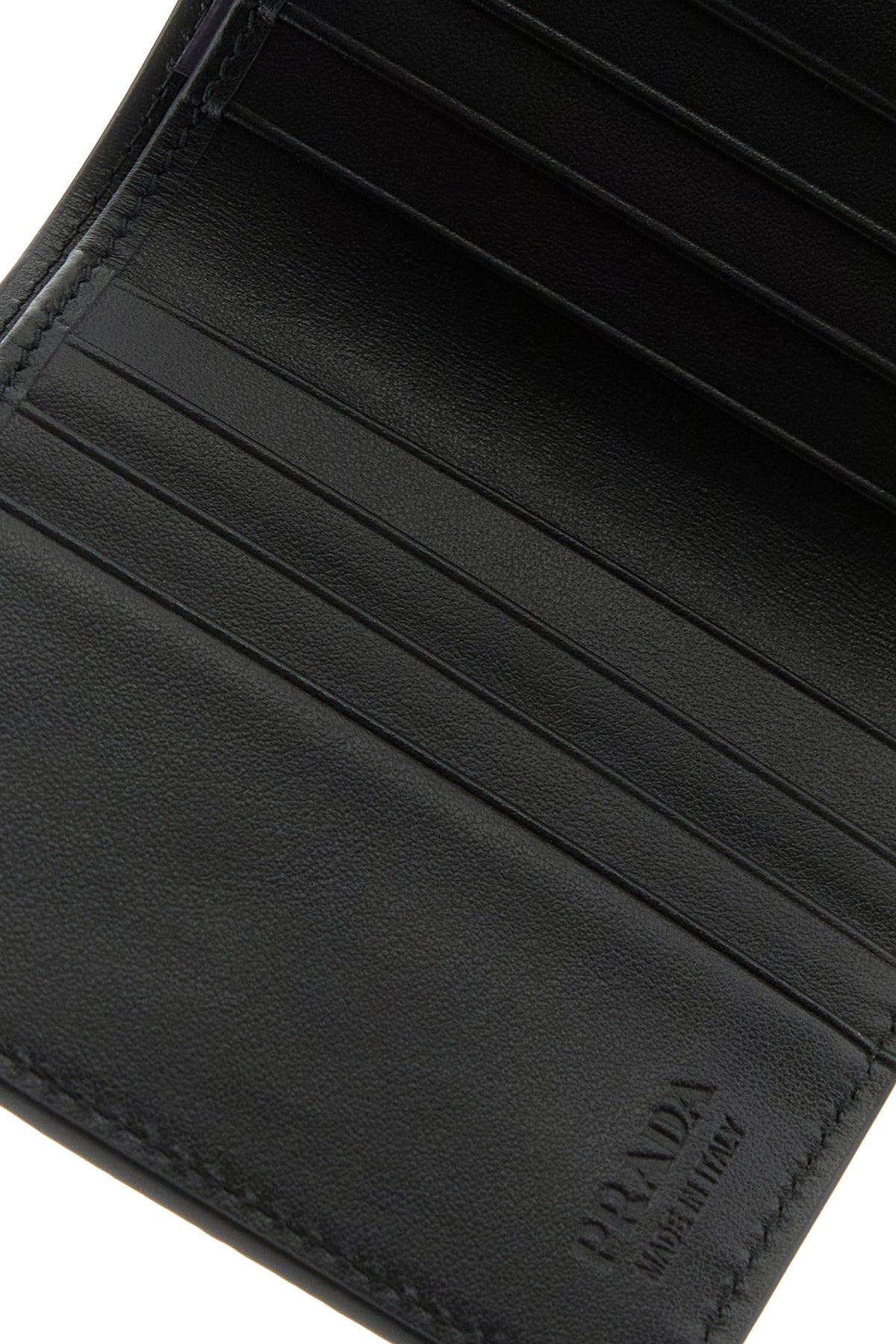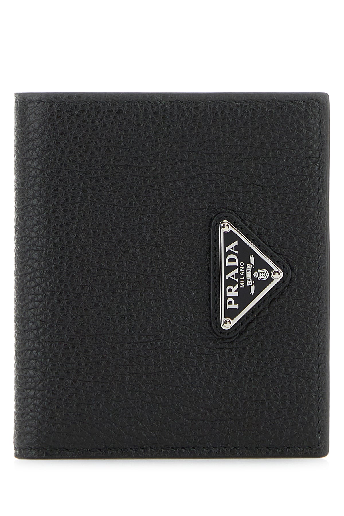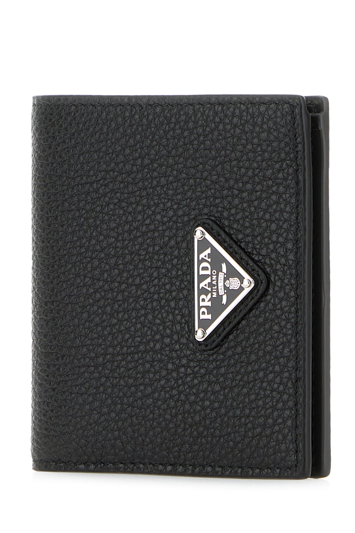 Wallet realized in pebble calf leather enriched by metal iconic logoed triangle at the front.