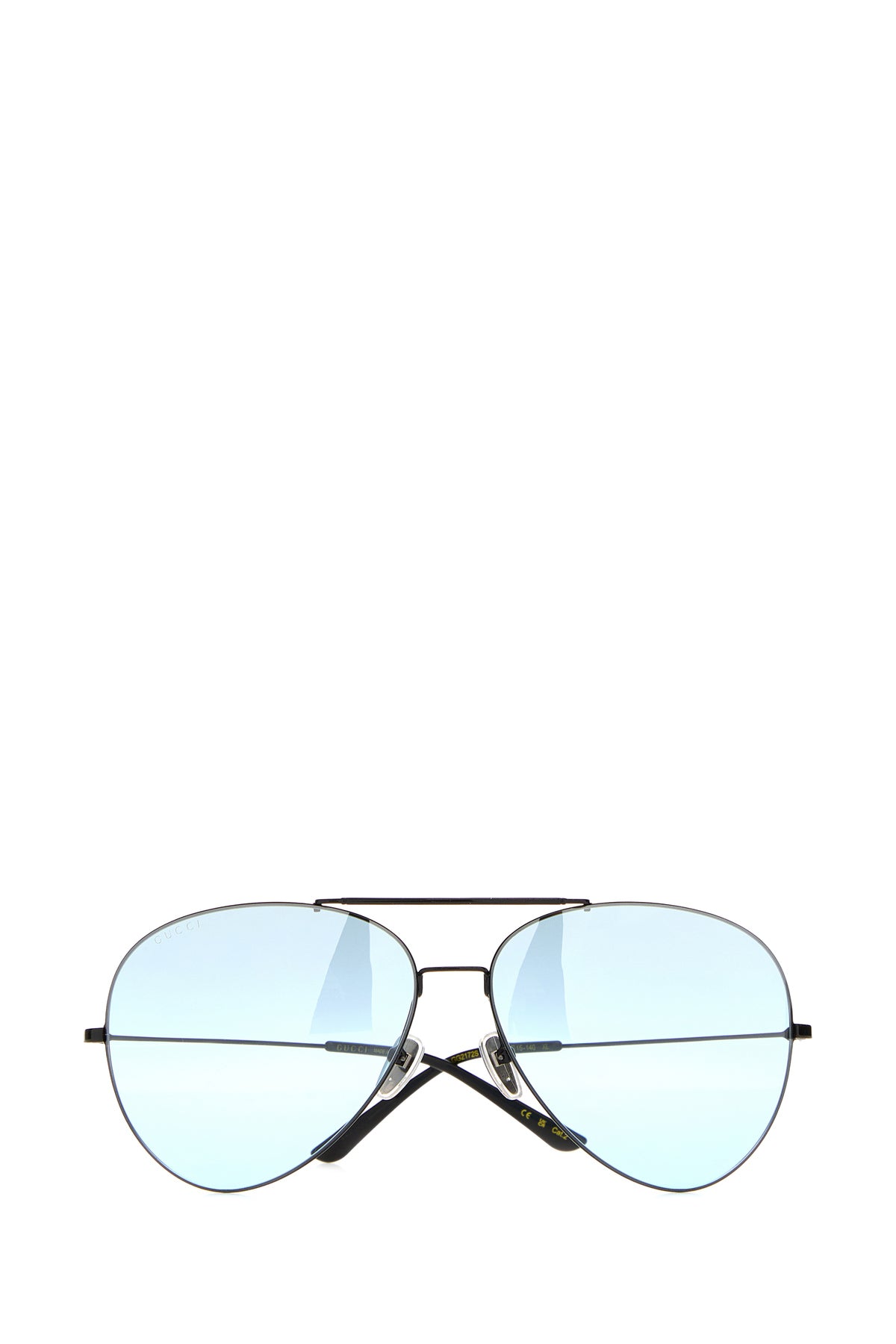 Aviator style sunglasses realized in metal characterized by Gucci motif on the lens and GG embossed motif on the arms.