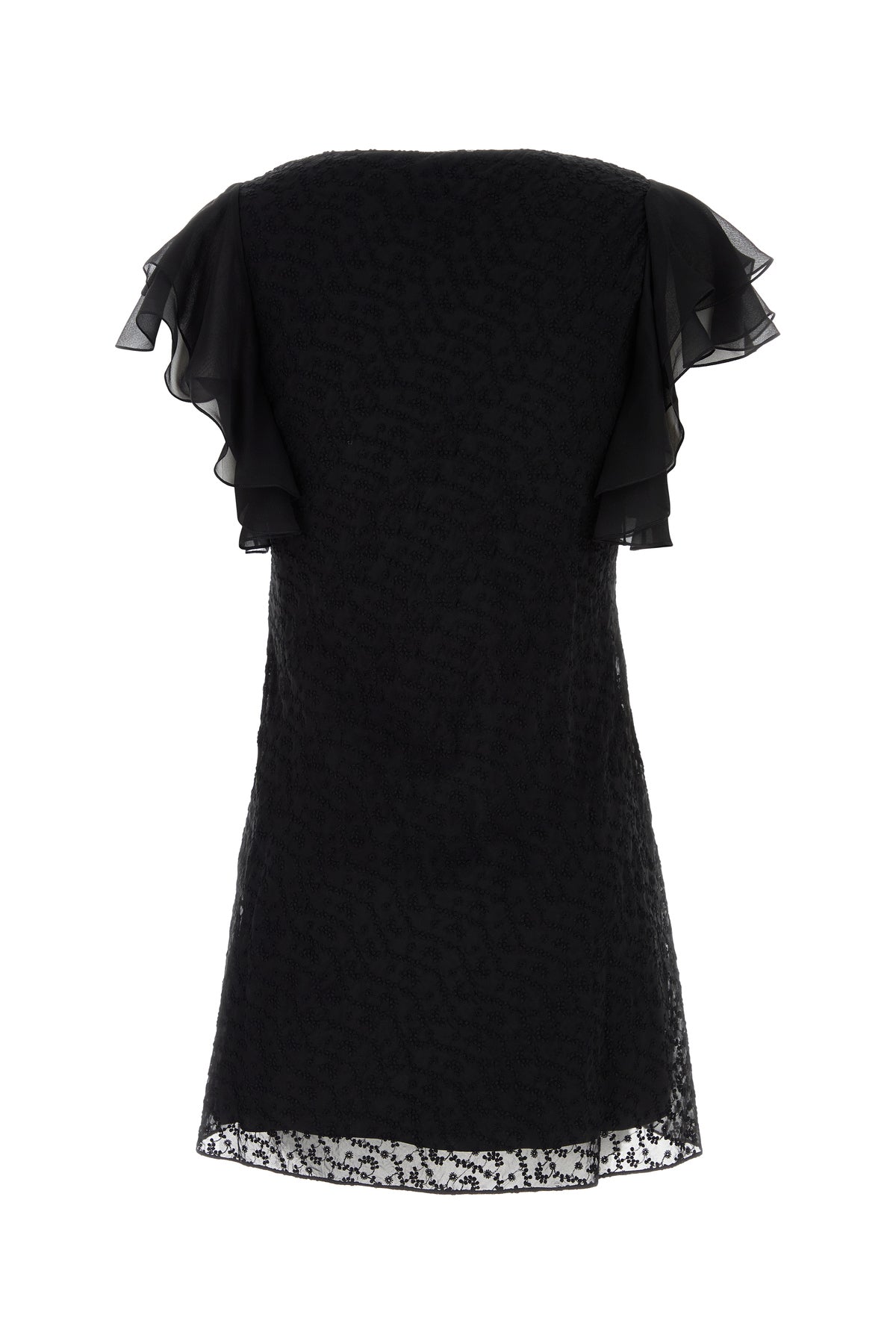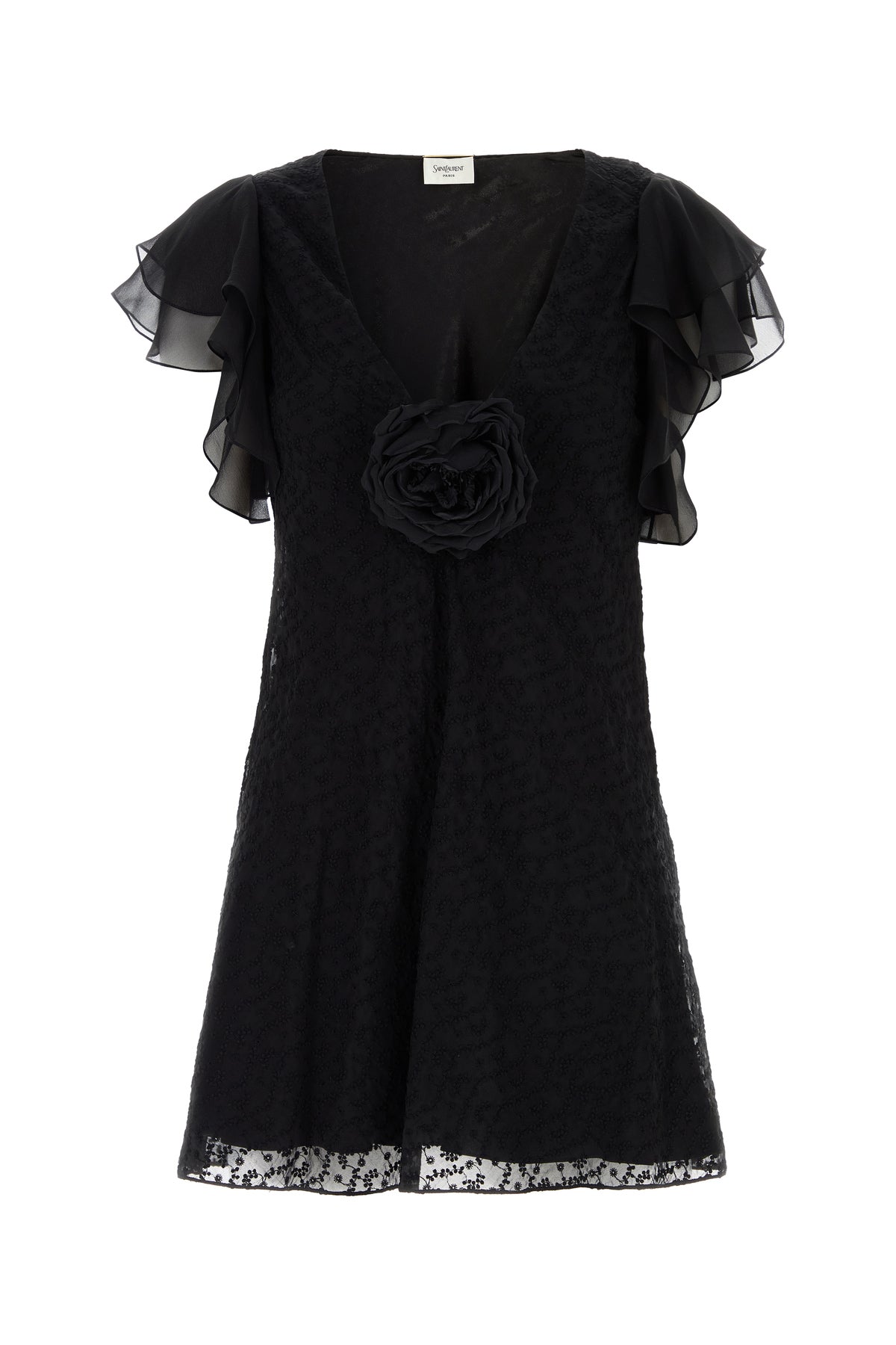 Mini dress realized in muslin characterized by tonal floral embroidery on the entire surface enriched by detachable rose-shaped brooch at the front.