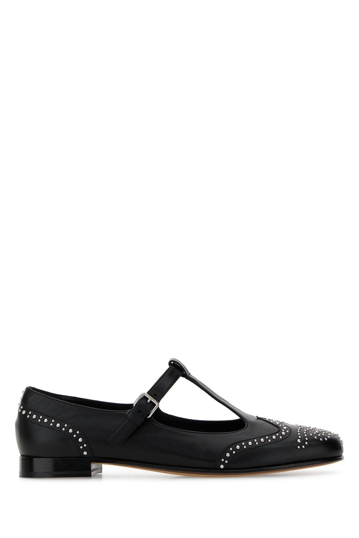 Ballerinas realized in nappa leather enriched by metal studs on the round toe and at the back.