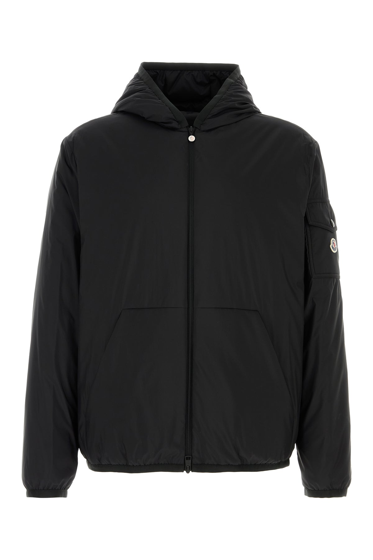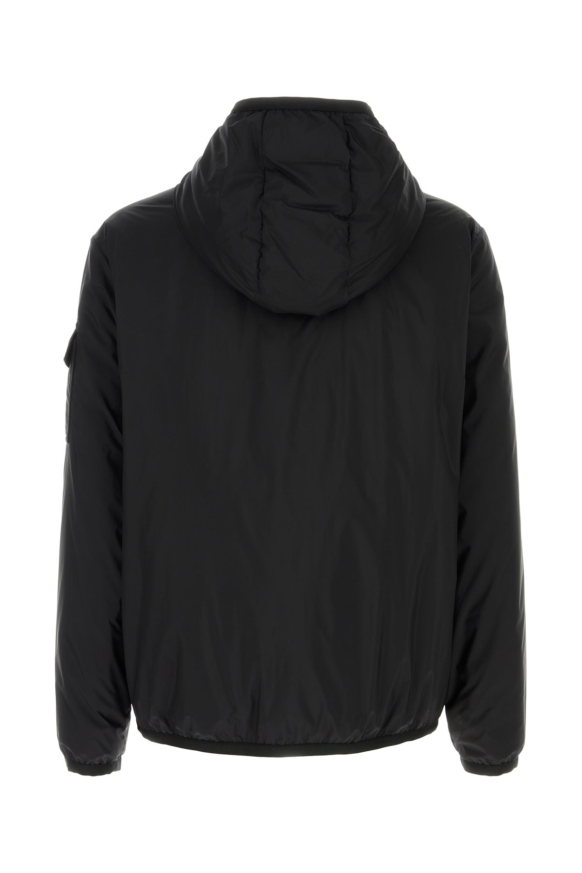 Down jacket realized in nylon enriched by contrasting logoed patch on the sleeve.