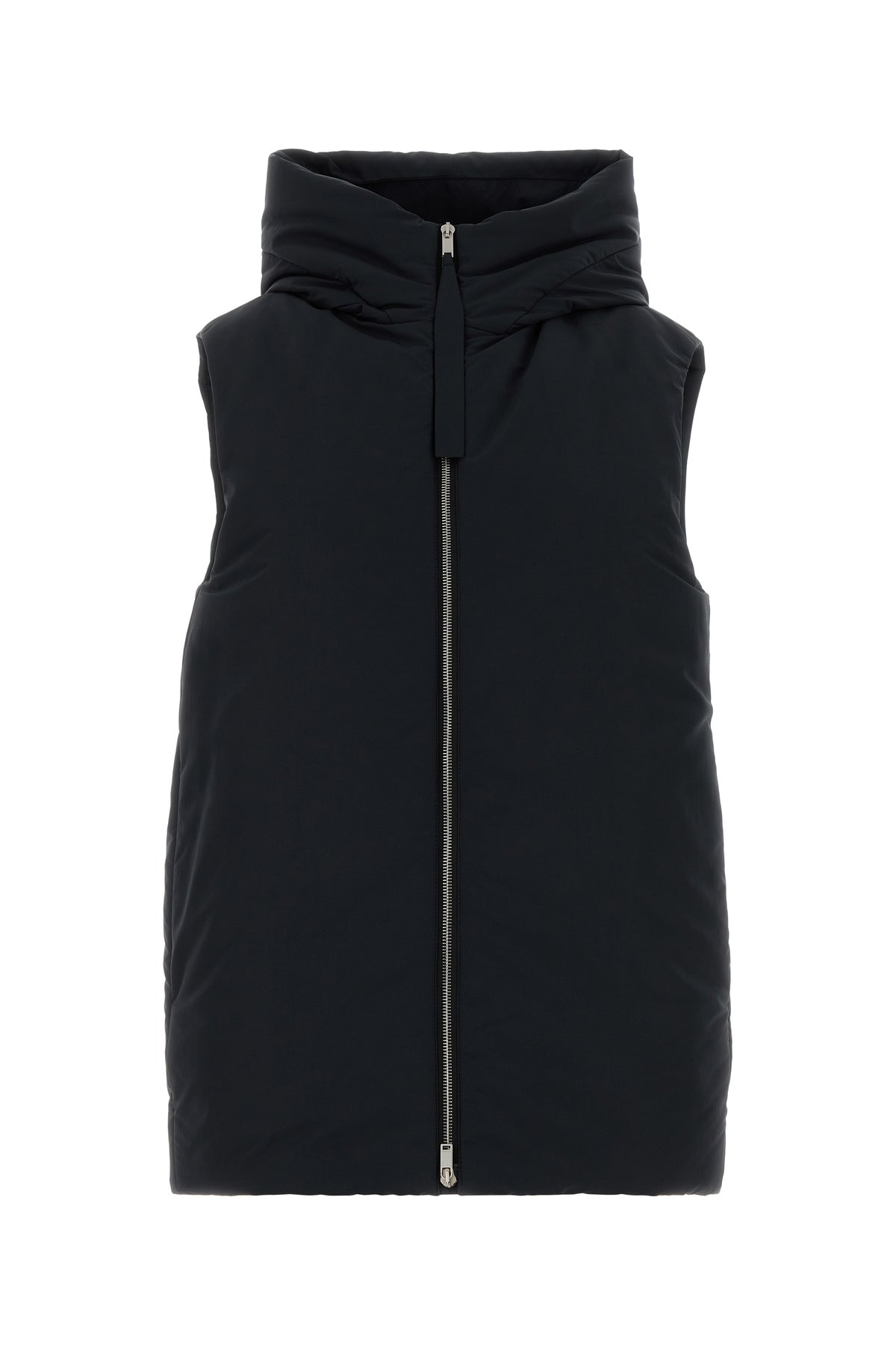 Sleeveless down jacket realized in polyester characterized by hood.