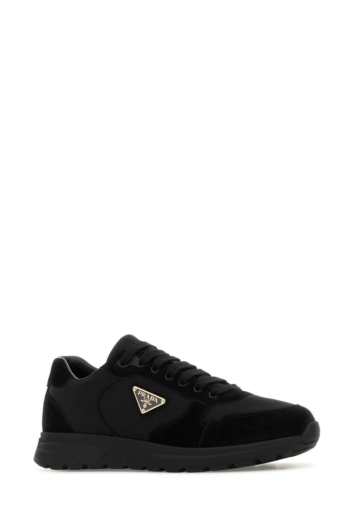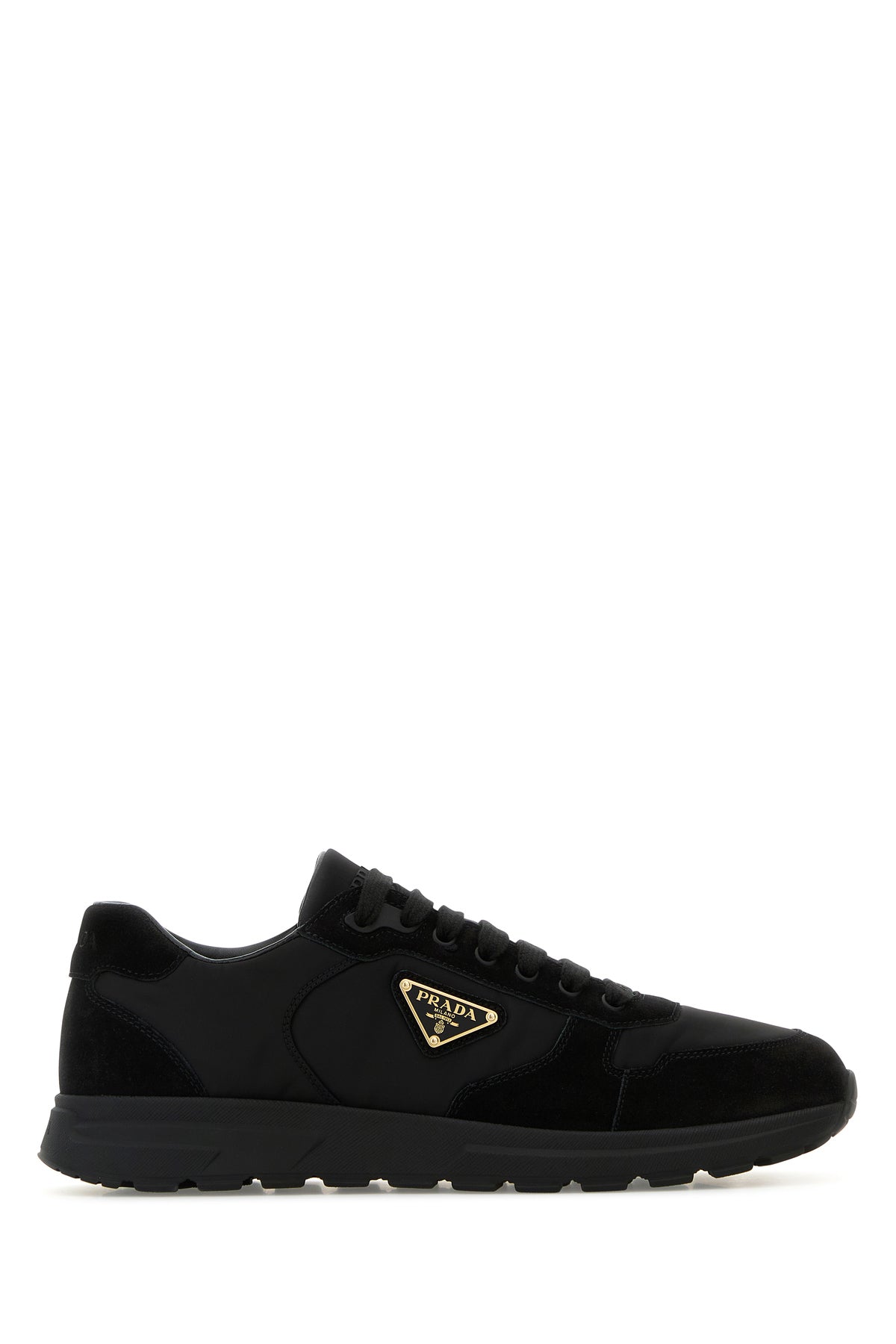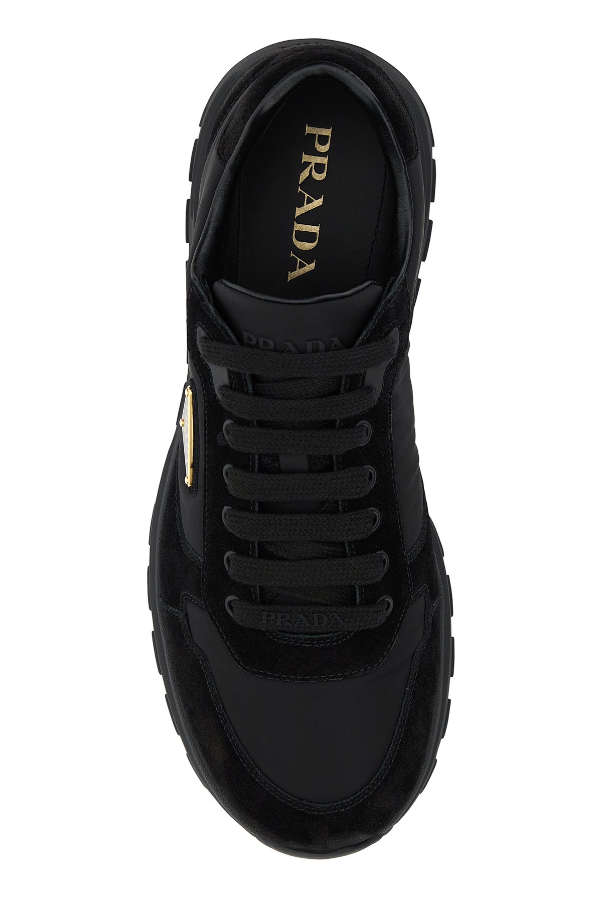 Sneakers realized in Re-Nylon and suede characterized by embossed logo on the heel enriched by iconic metal logged triangle on the side.