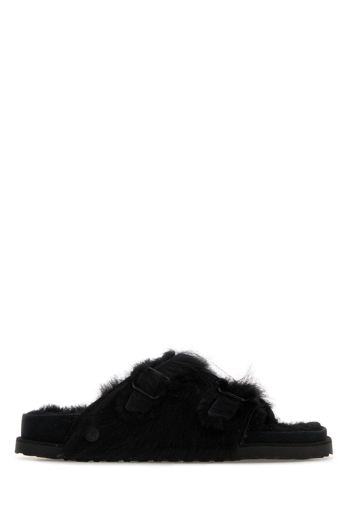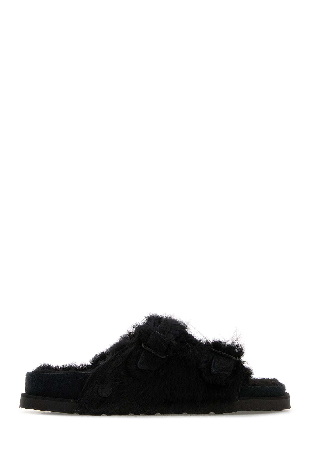 Slippers realized in shearling enriched by logoed metal detail on the side.