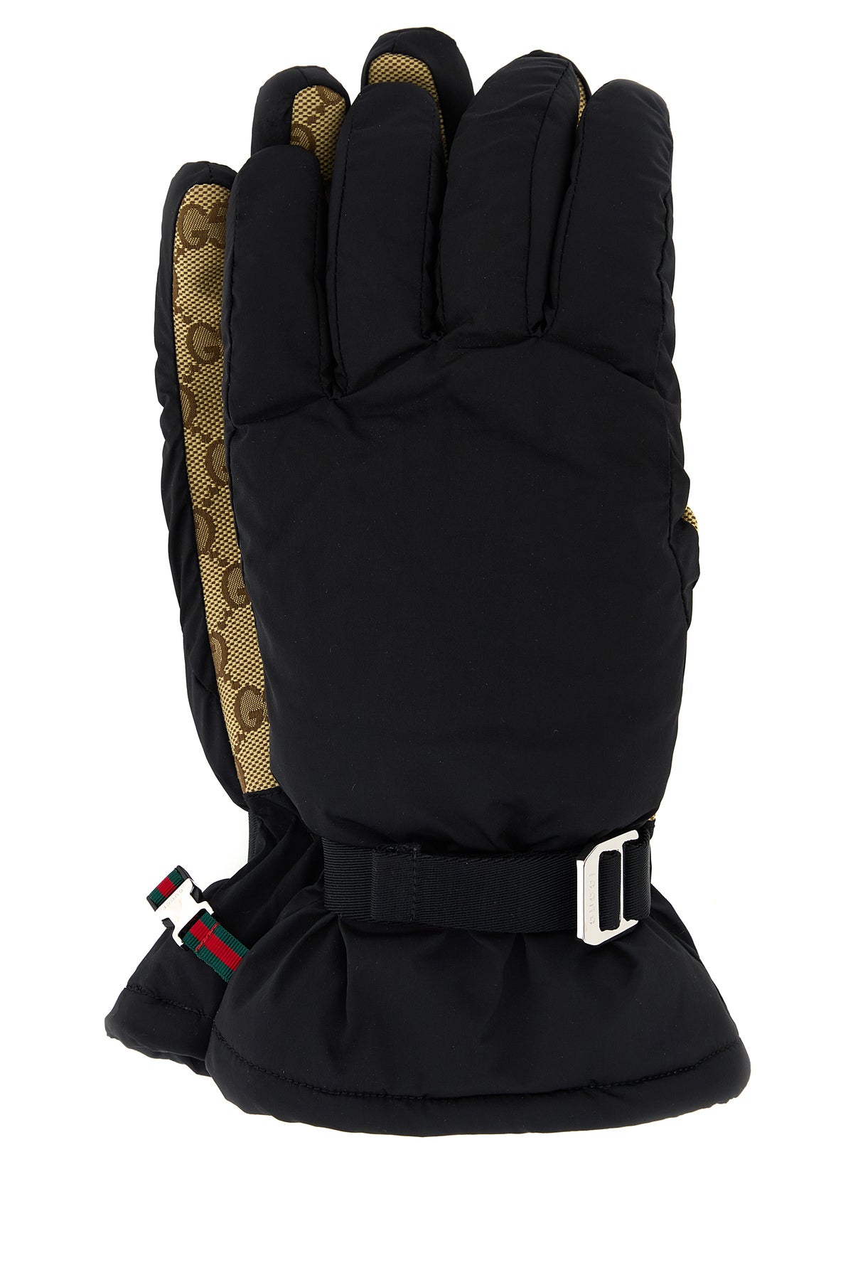 Gloves realized in stretch nylon with GG fabric insert.