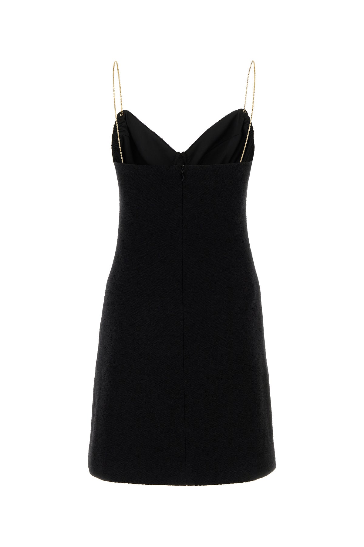 Mini dress realized in stretch virgin wool blend characterized by V neckline.