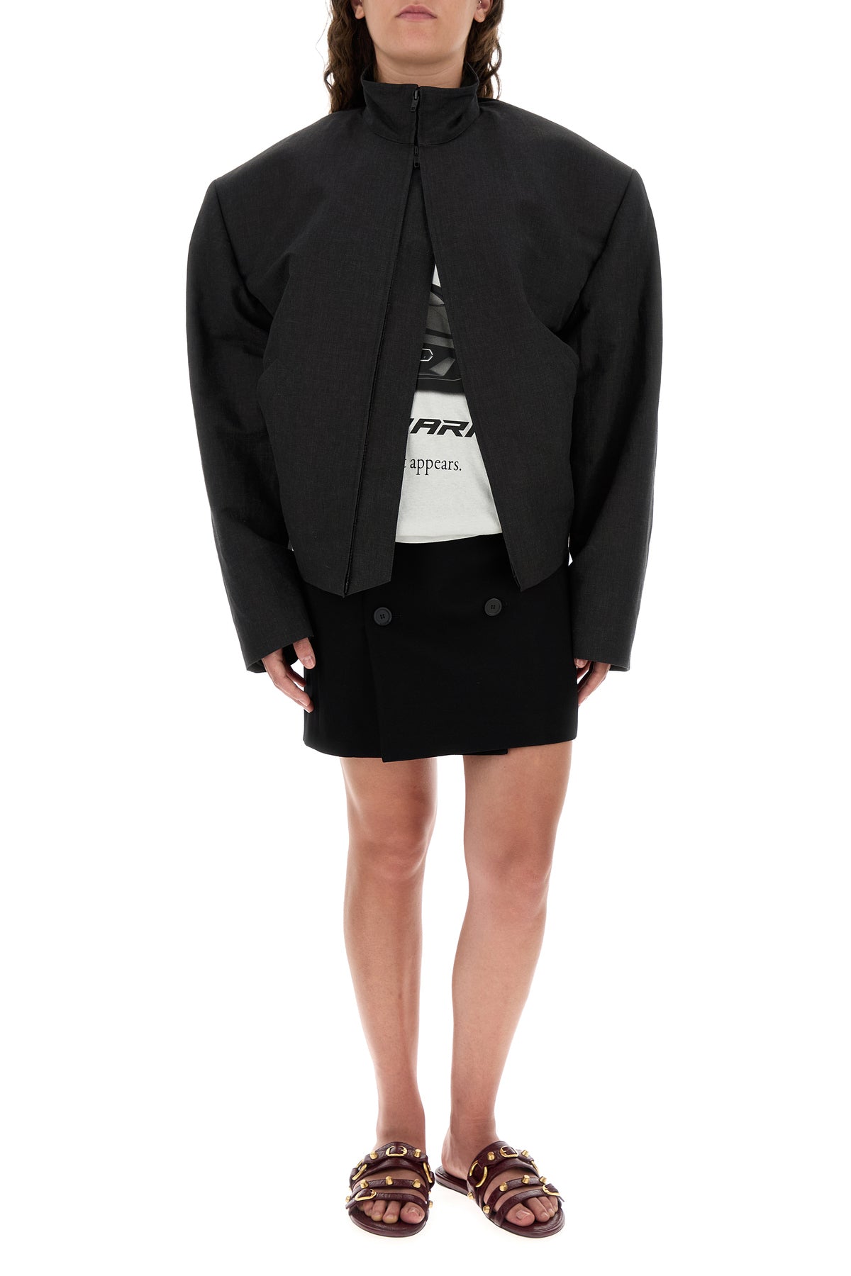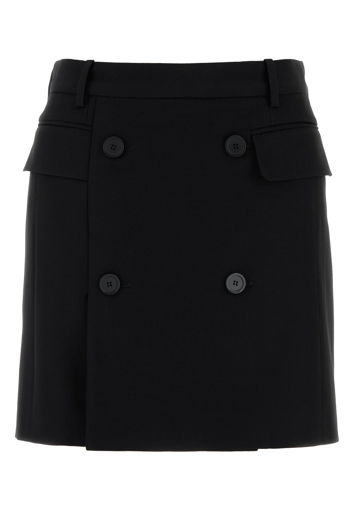 Mini skirt realized in viscose and wool twill enriched by decorative buttons at the front.