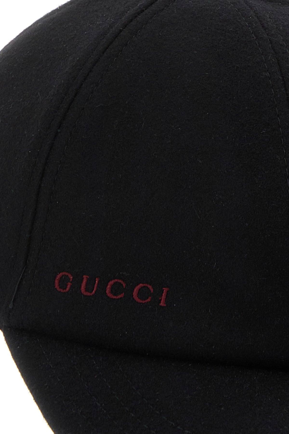 Baseball cap realized in pure wool characterized by Gucci embroidery at the front.