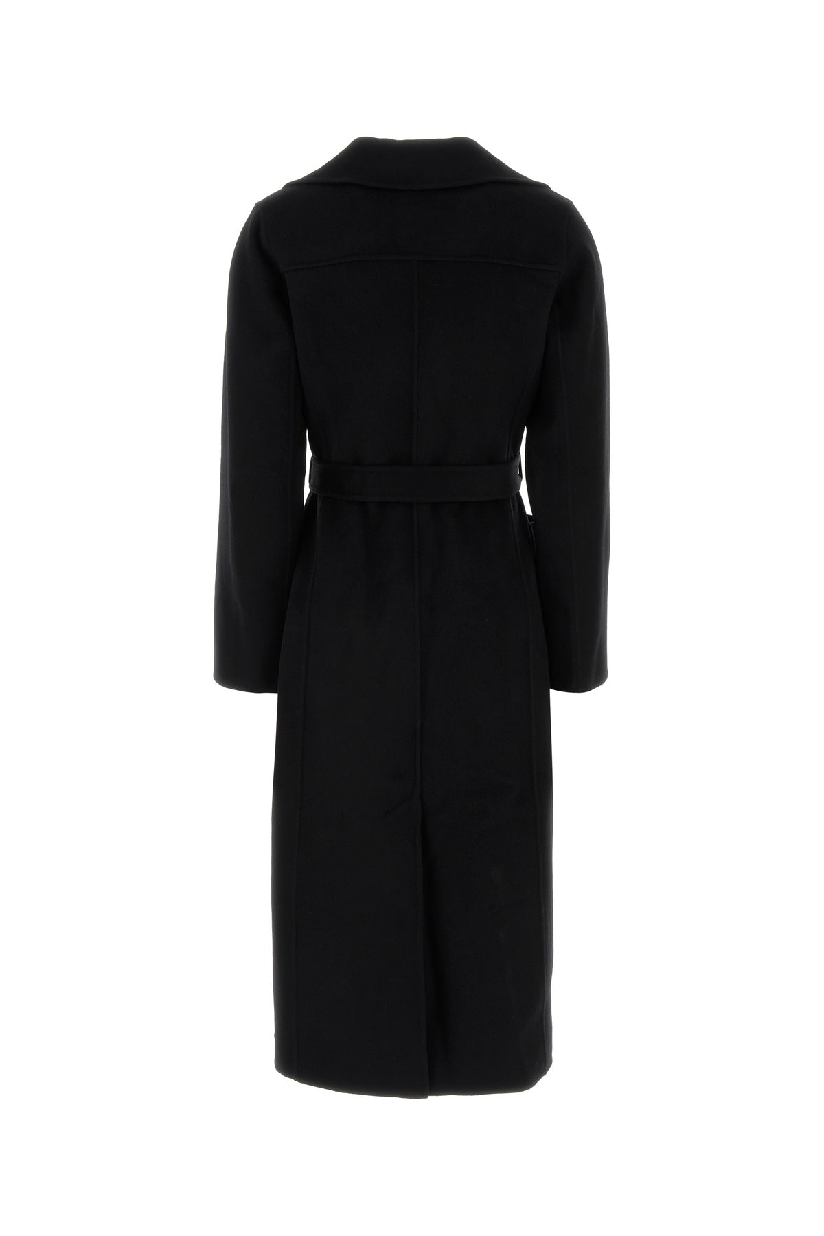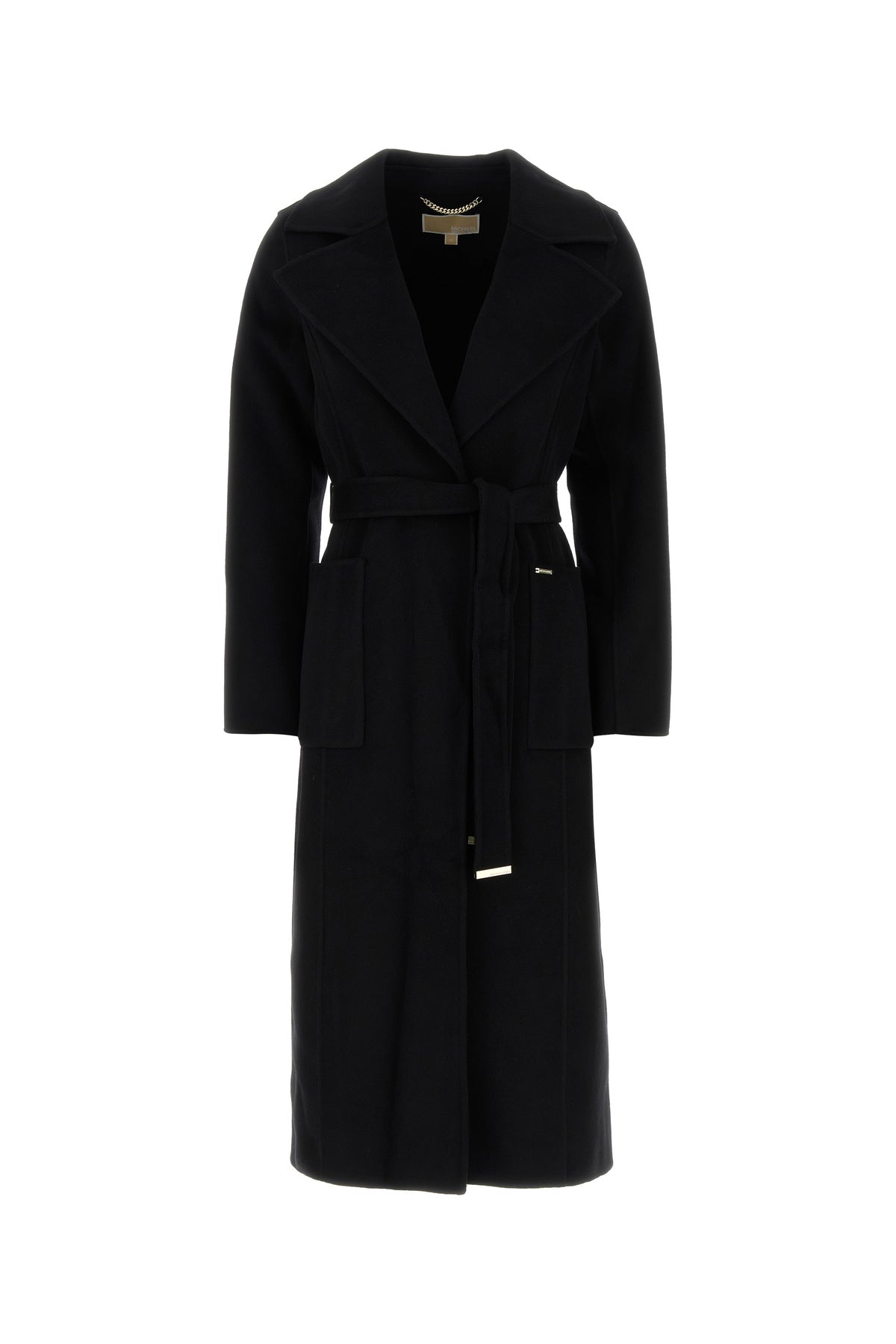 Coat realized in wool blend enriched by logoed metal plate at the front.