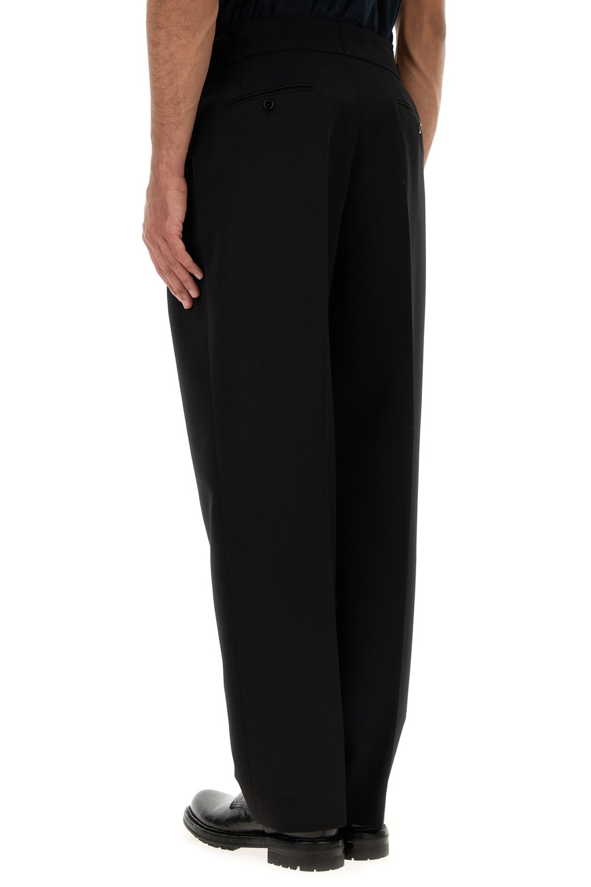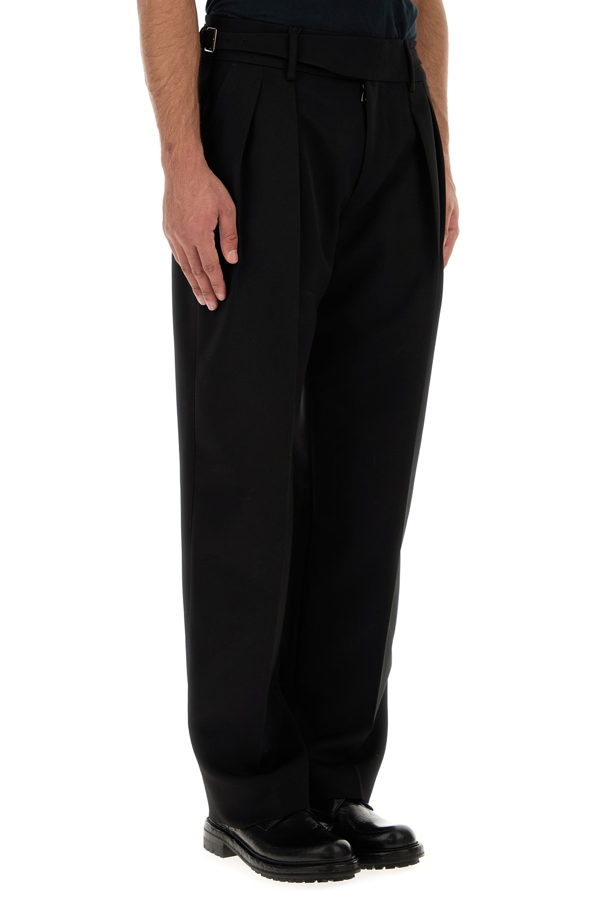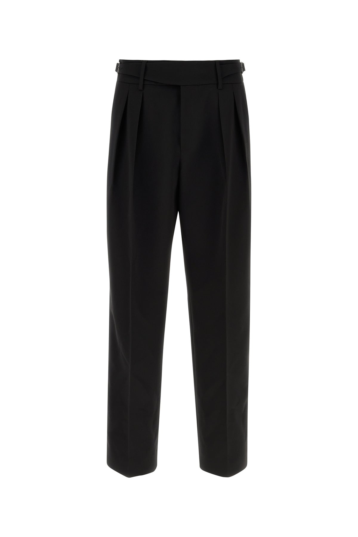 Pant realized in pure virgin wool enriched by adjustable straps with logoed buckles at the waist.