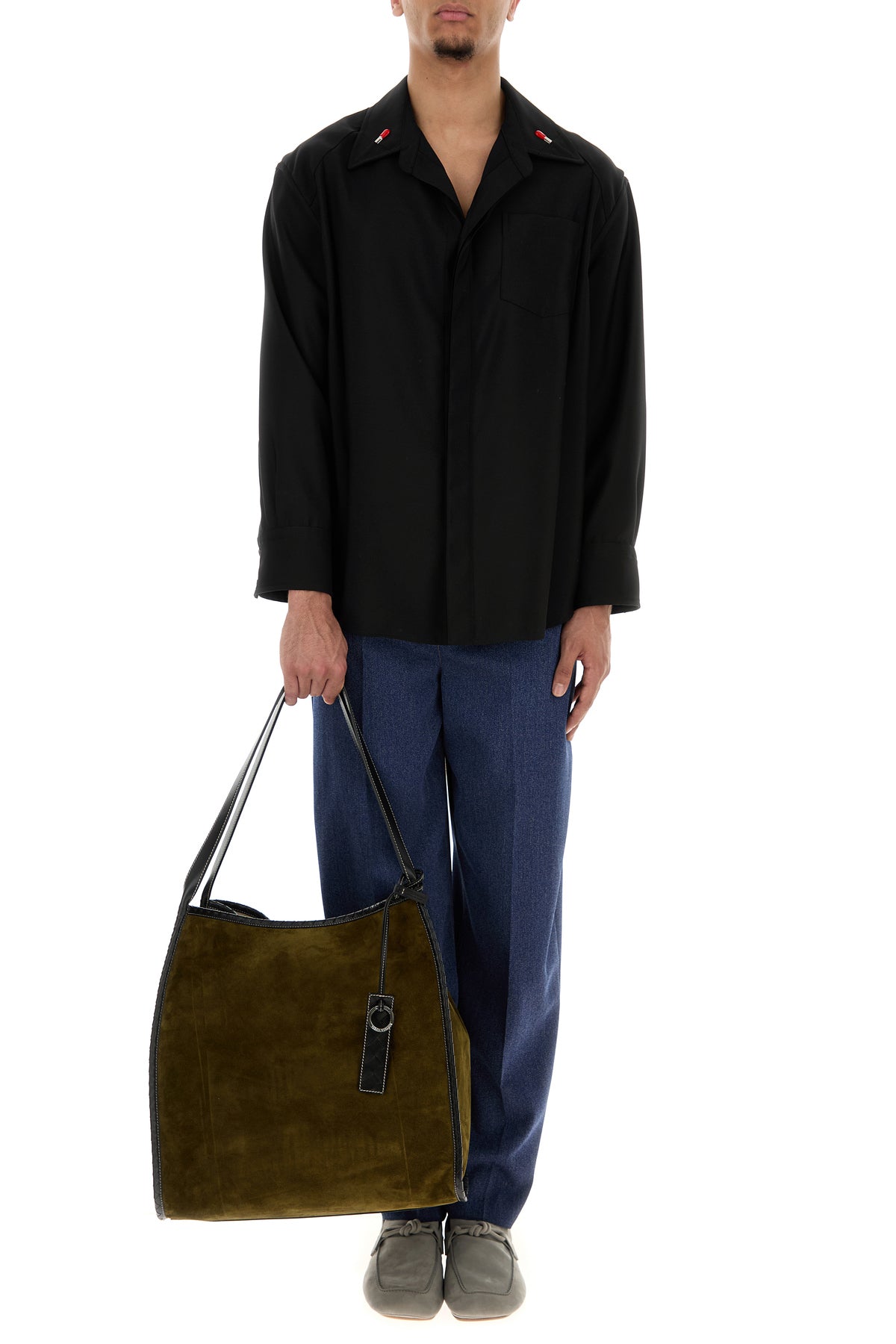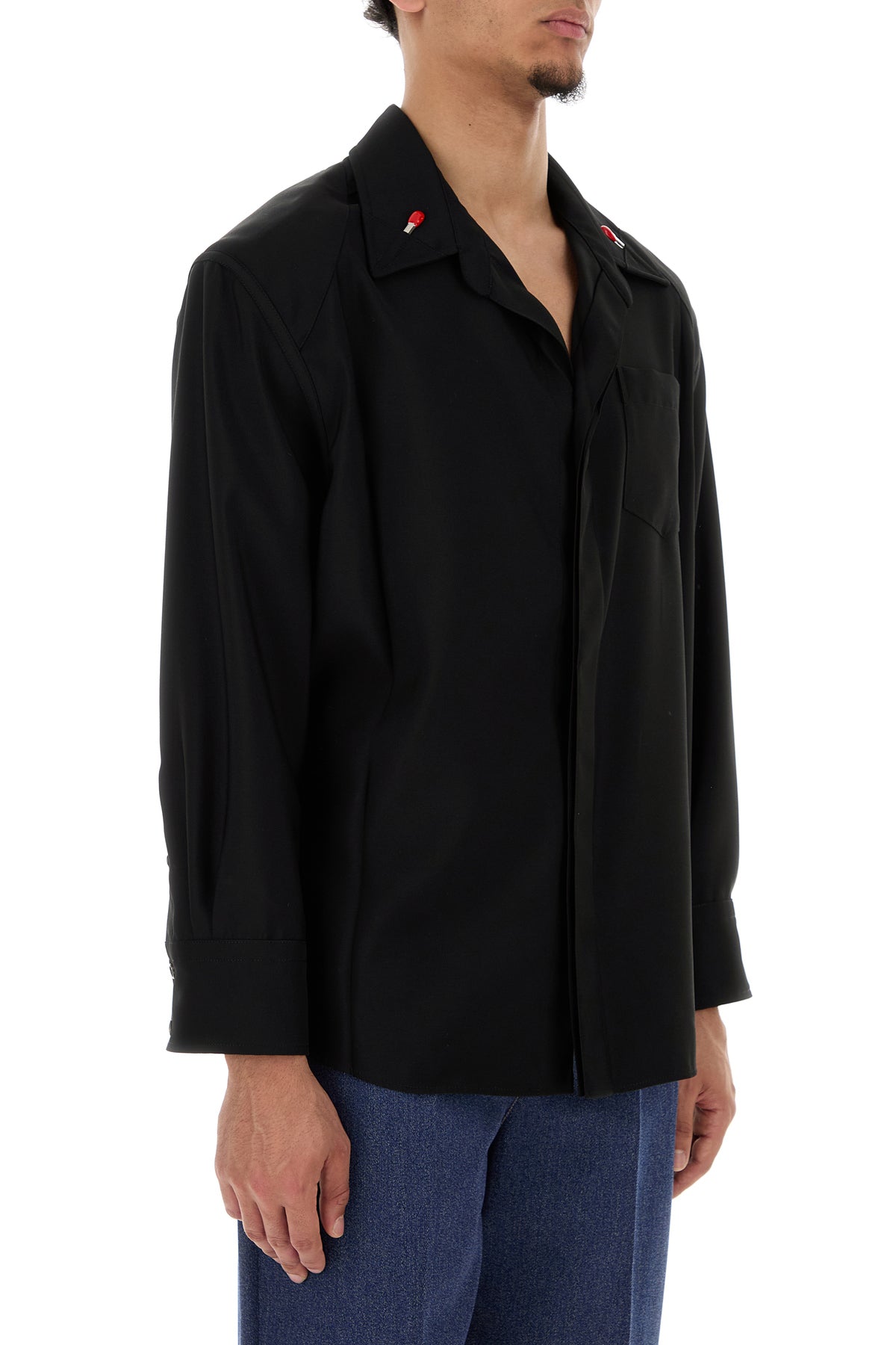 Shirt realized in pure wool enriched by Fiammiferi metal detail on the notched collar.