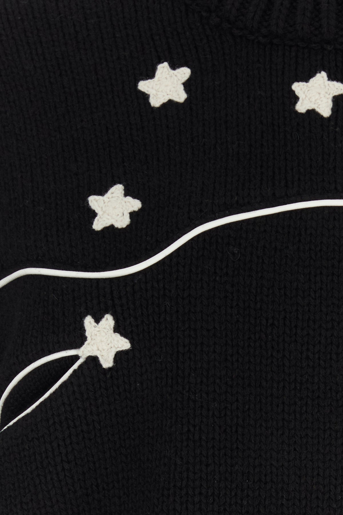 Sweater realized in pure wool characterized by peculiar embroidery at the top enriched by iconic fabric triangle at the back.