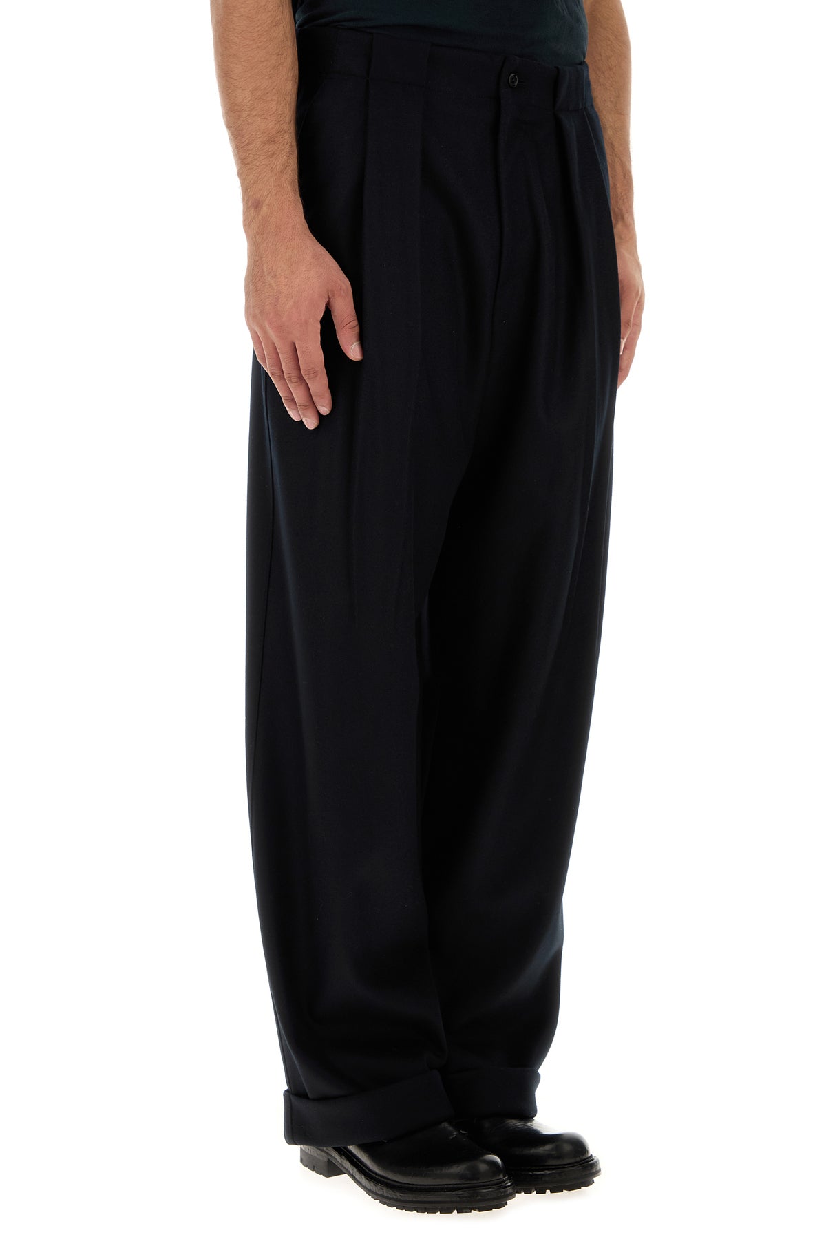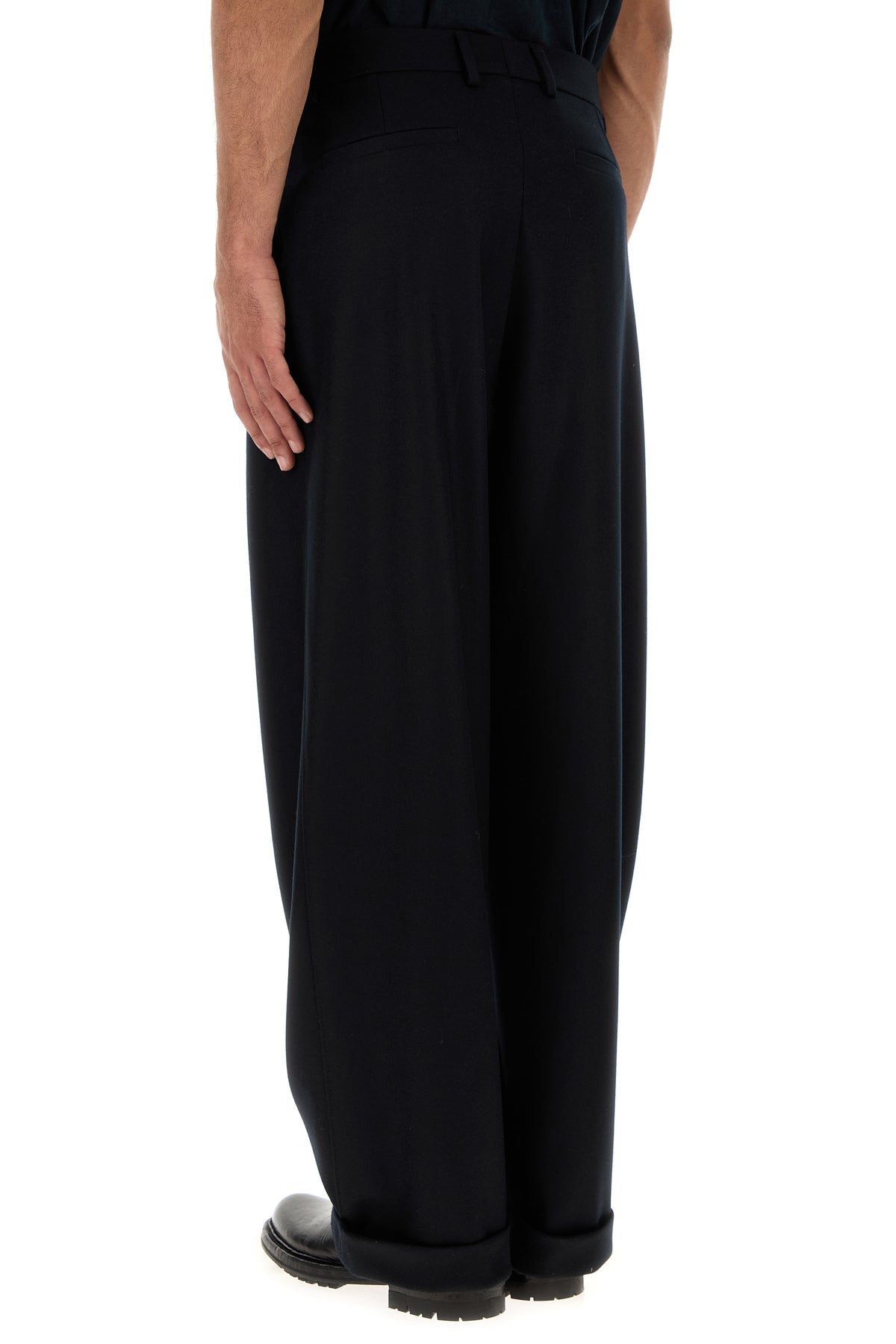 Wide-leg pant realized in pure virgin wool.