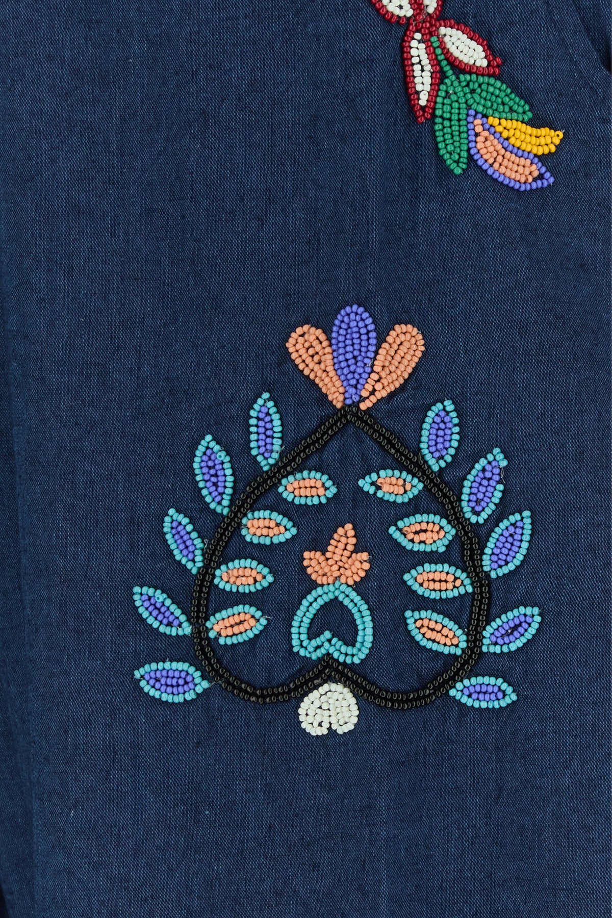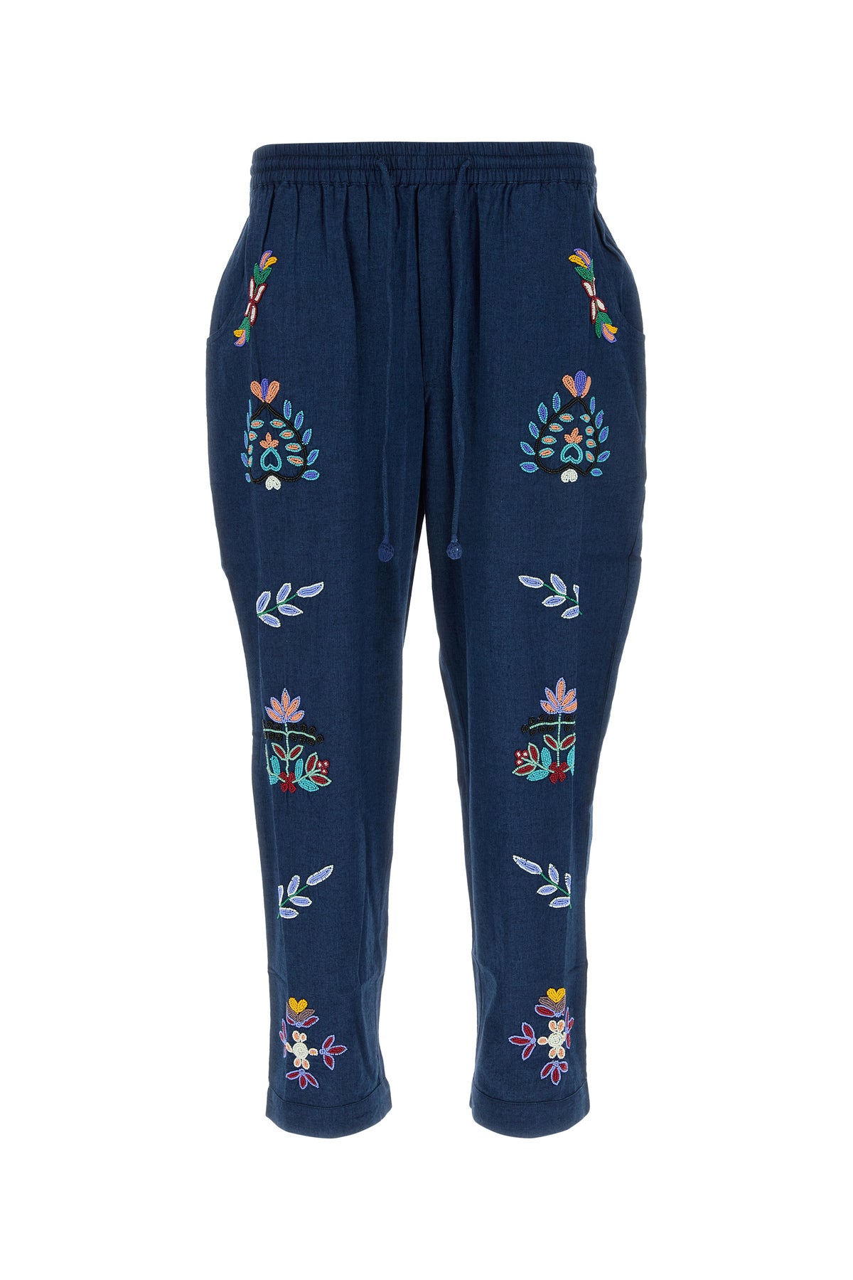 Pant realized in pure cotton characterized by embroider with beads at the front.