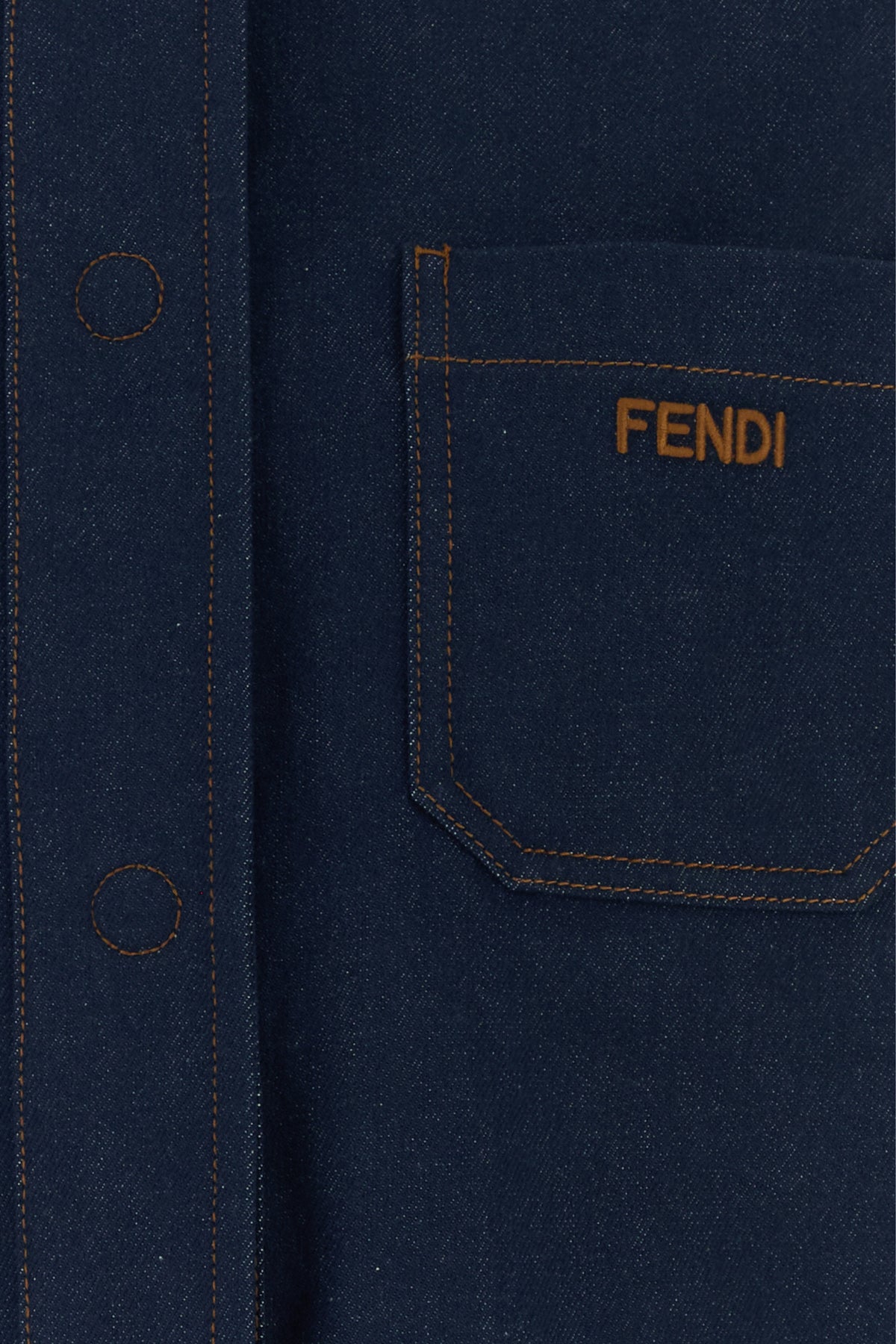 Cropped-cut jacket realized in pure cotton denim characterized by Fendi embroidery on the chest enriched by leather FF patch at the back.