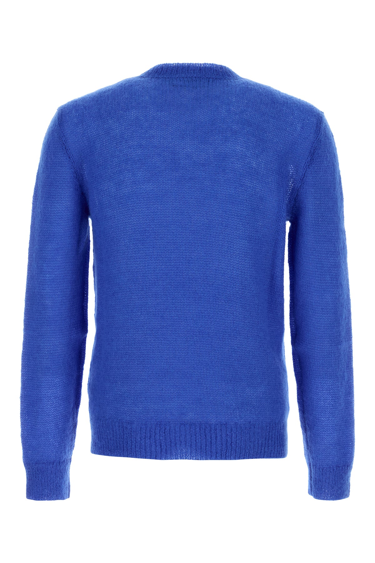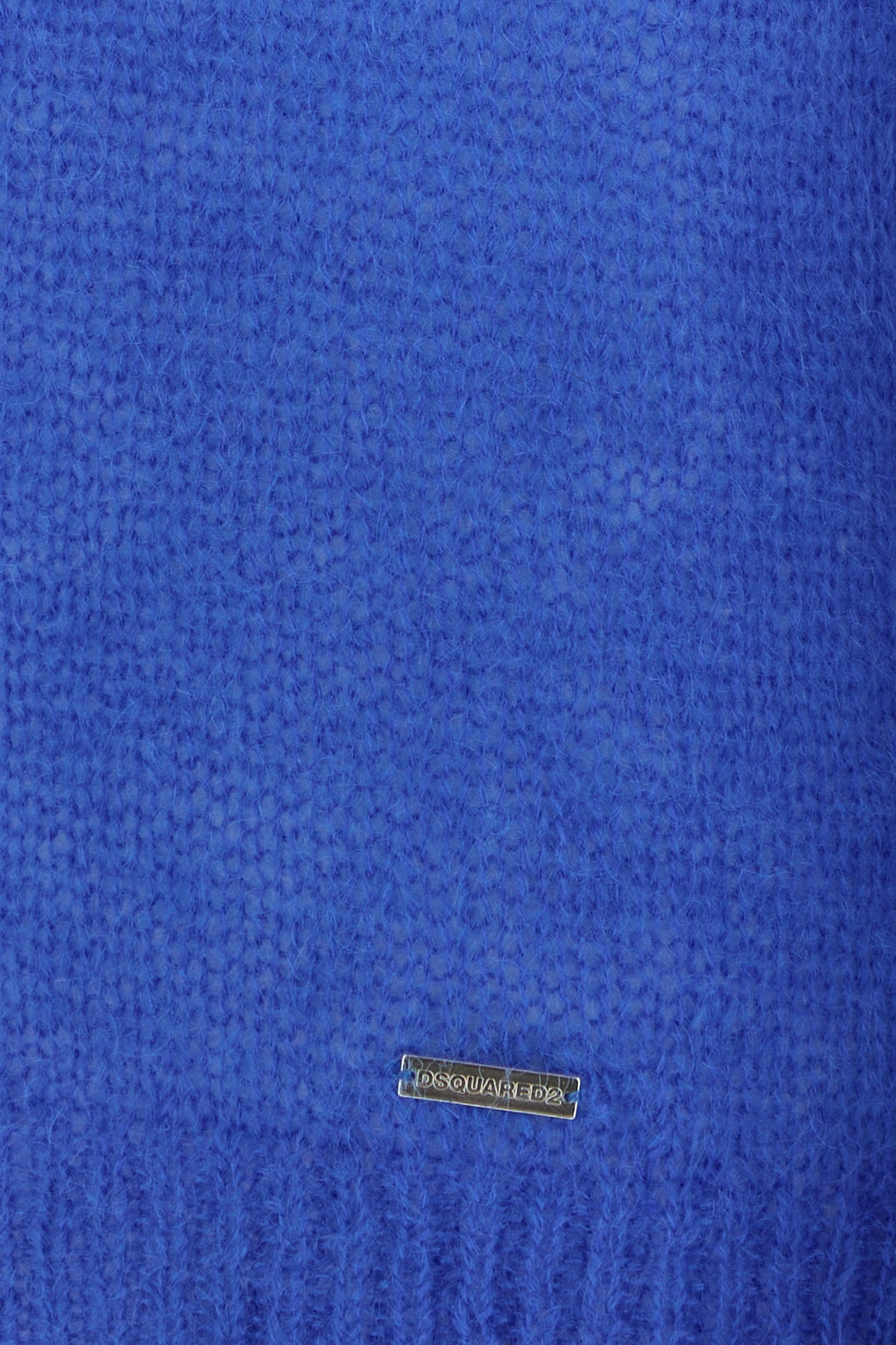 Sweater realized in mohair blend enriched by logoed metal plate on the hemline.