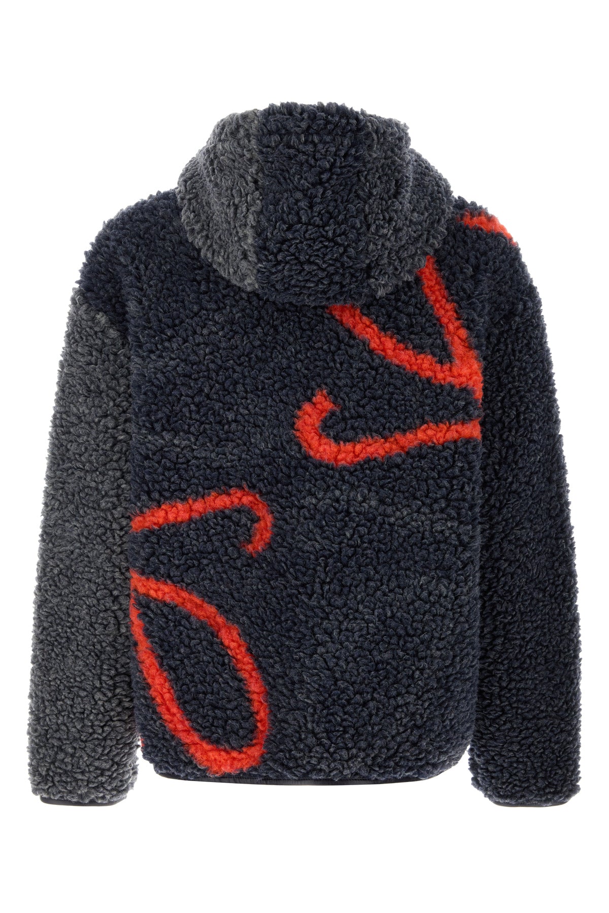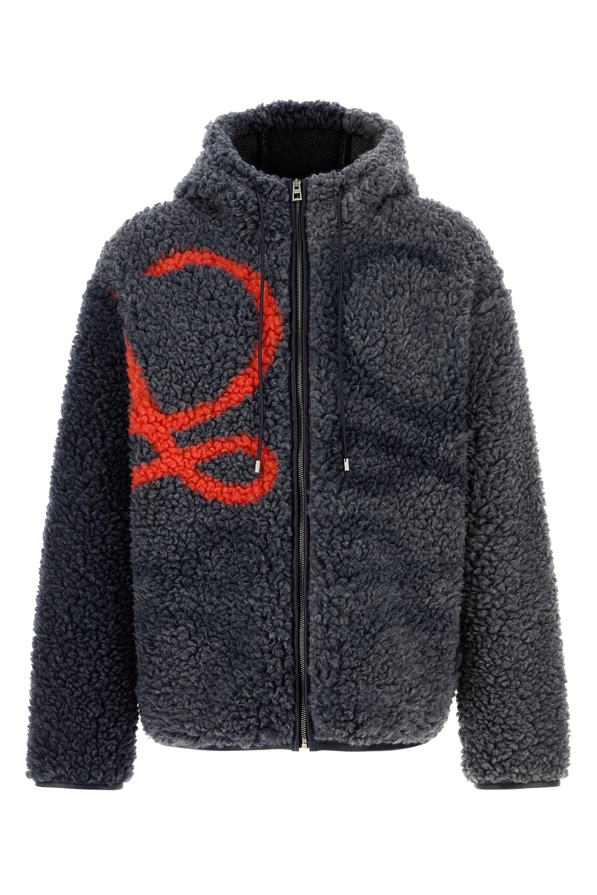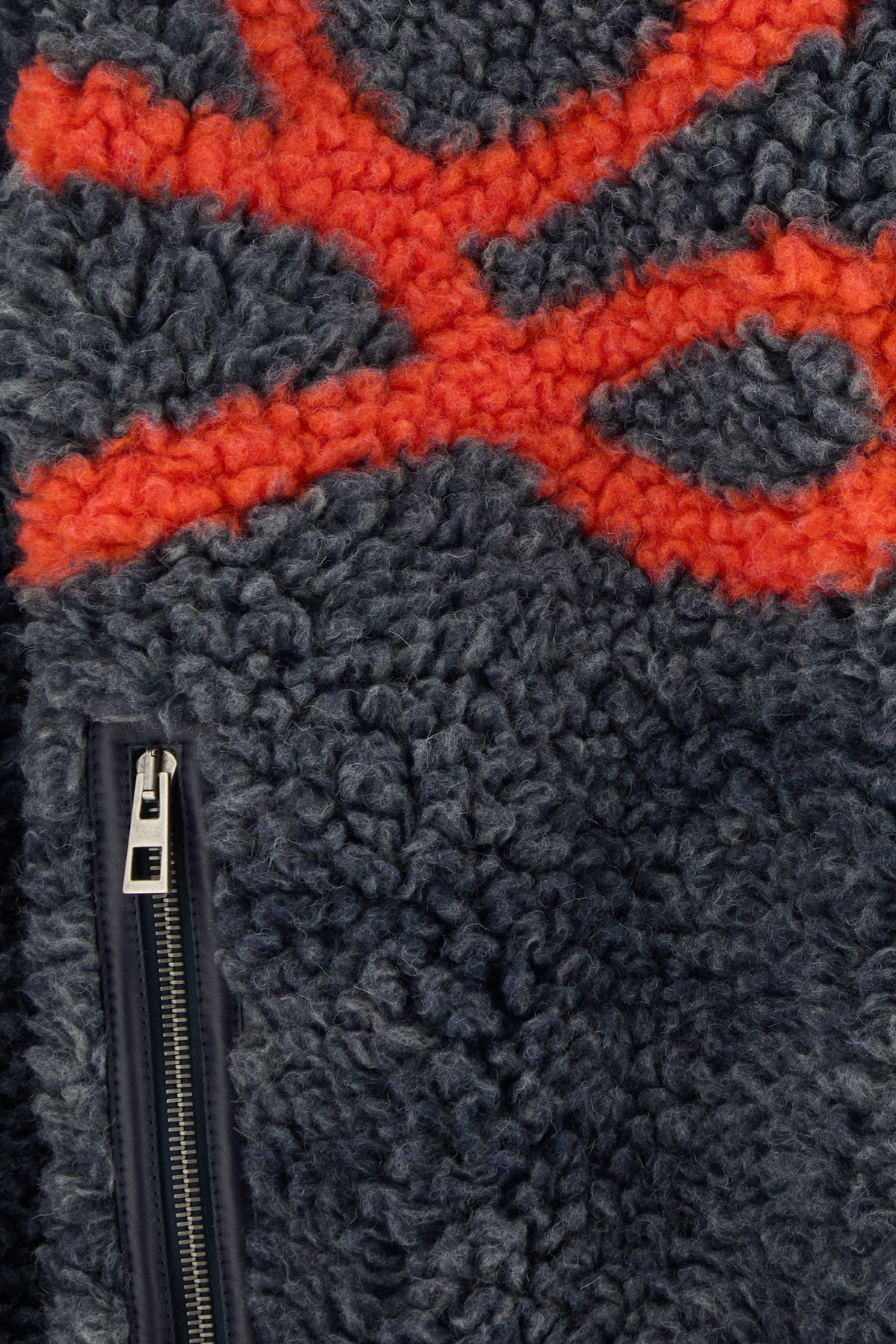 Oversize jacket realized in pile with leather trimmings characterized by contrasting Anagram print at the front and at the back.