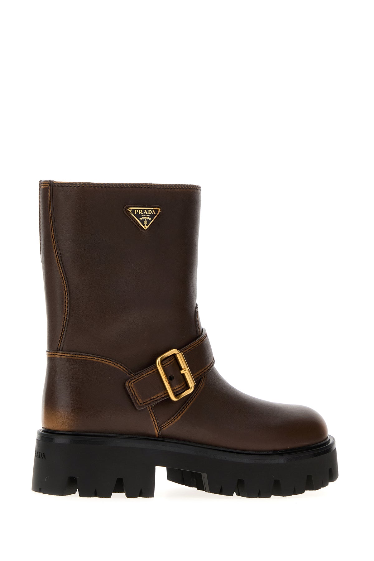 Boots realized in vintage effect leather enriched by iconic logoed metal triangle on the side.