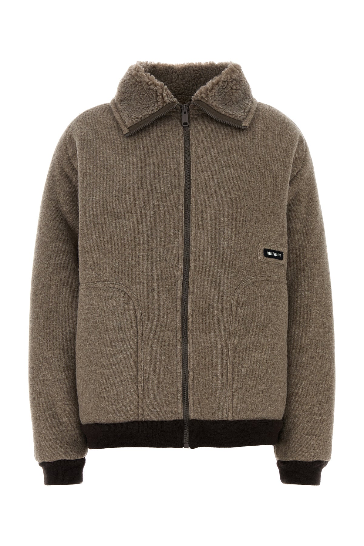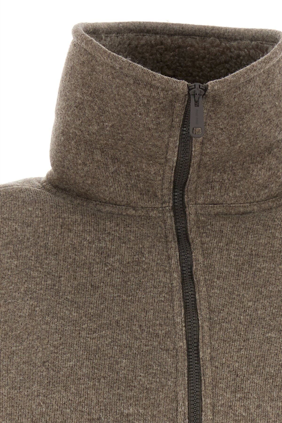 Jacket realized in recycled pile enriched by contrasting logoed label at the front.