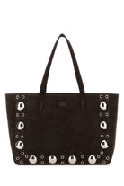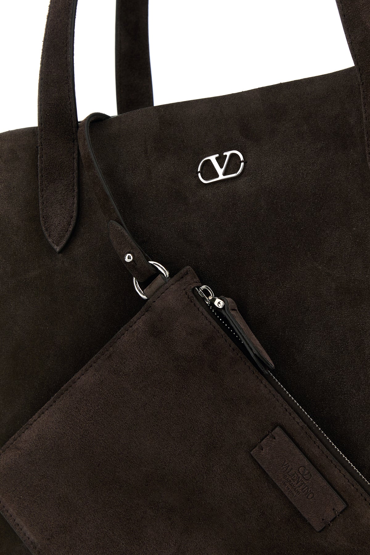 Shopping bag realized in suede enriched by VLogo Signature metal detail at the front and metal studs on the trimmings.