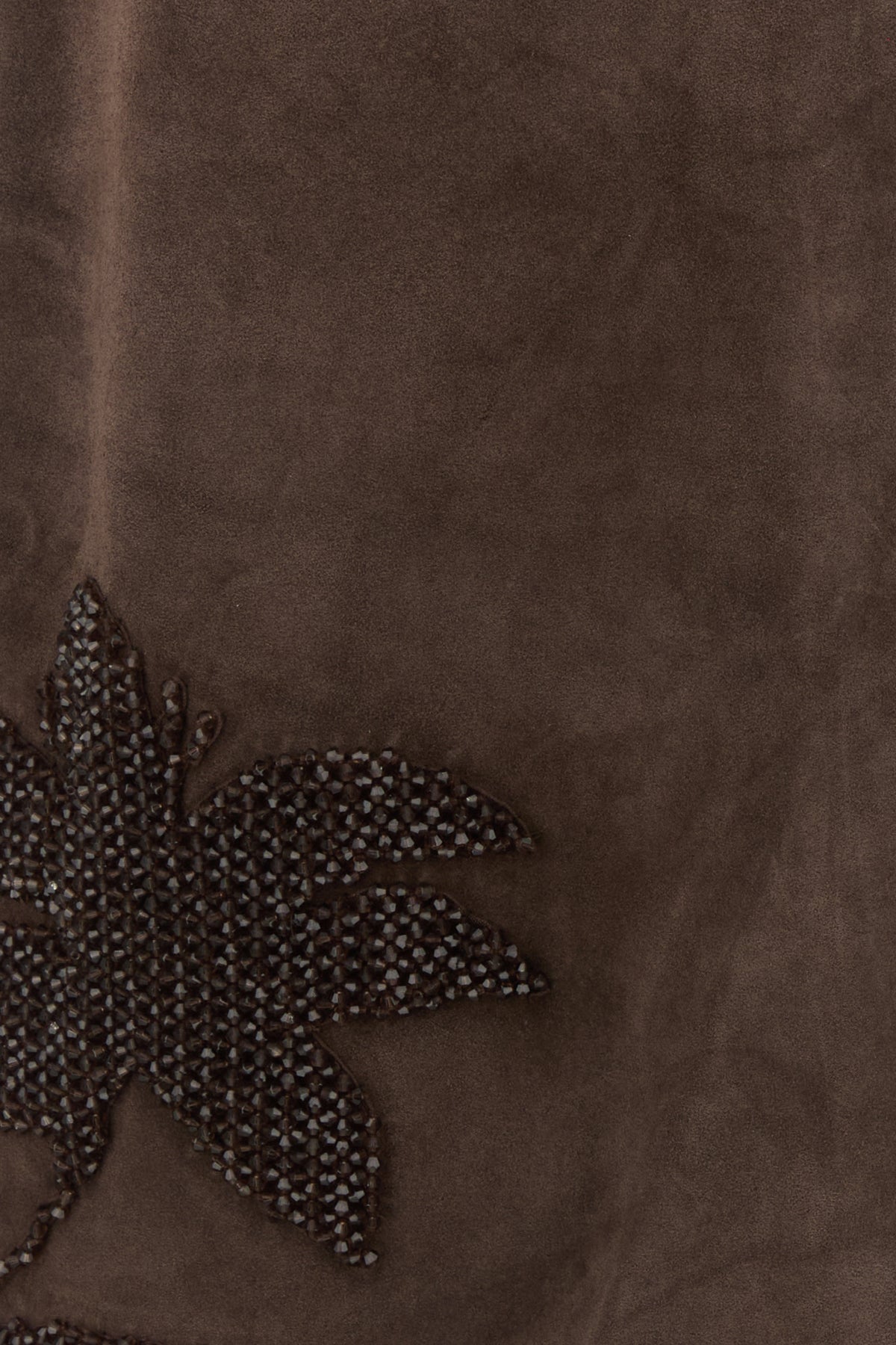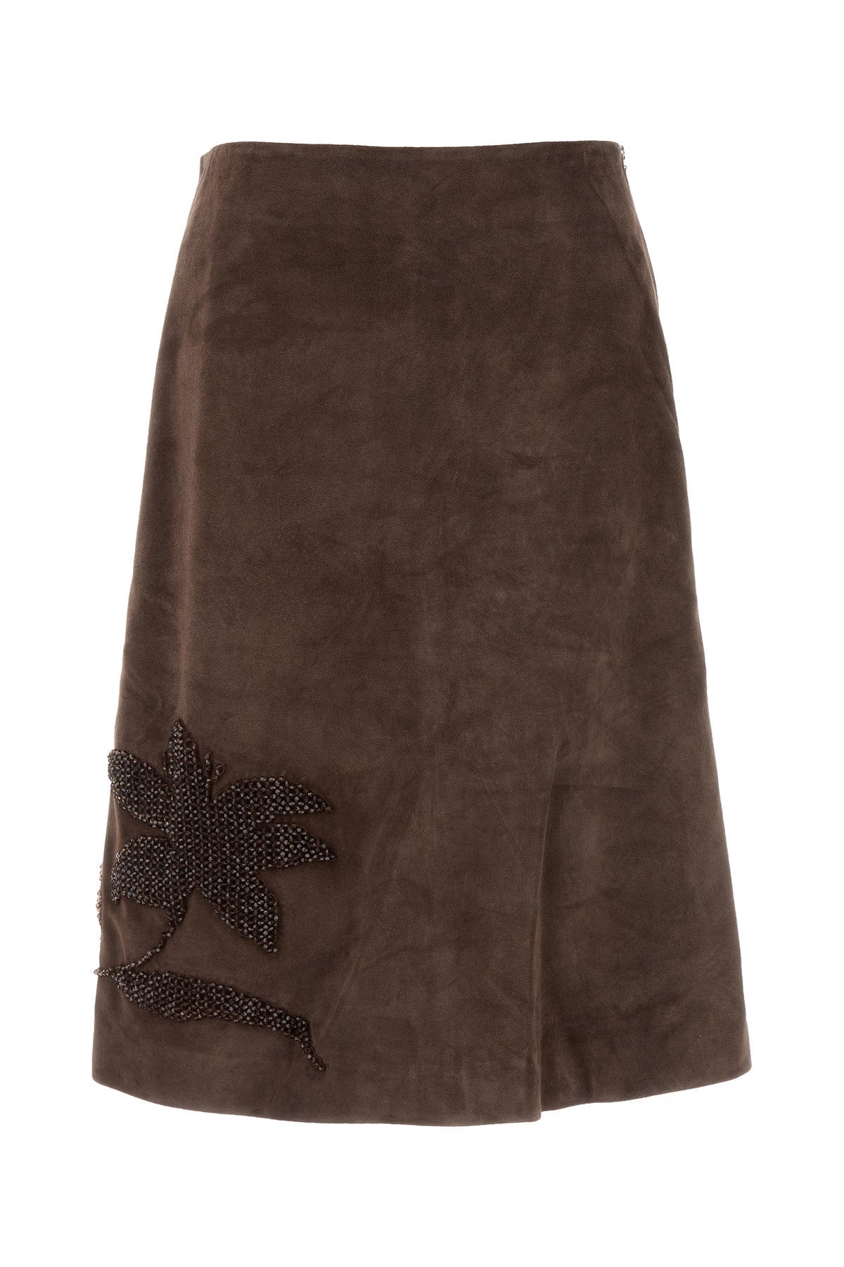 Skirt realized in suede characterized by embroidery with beads on the side.