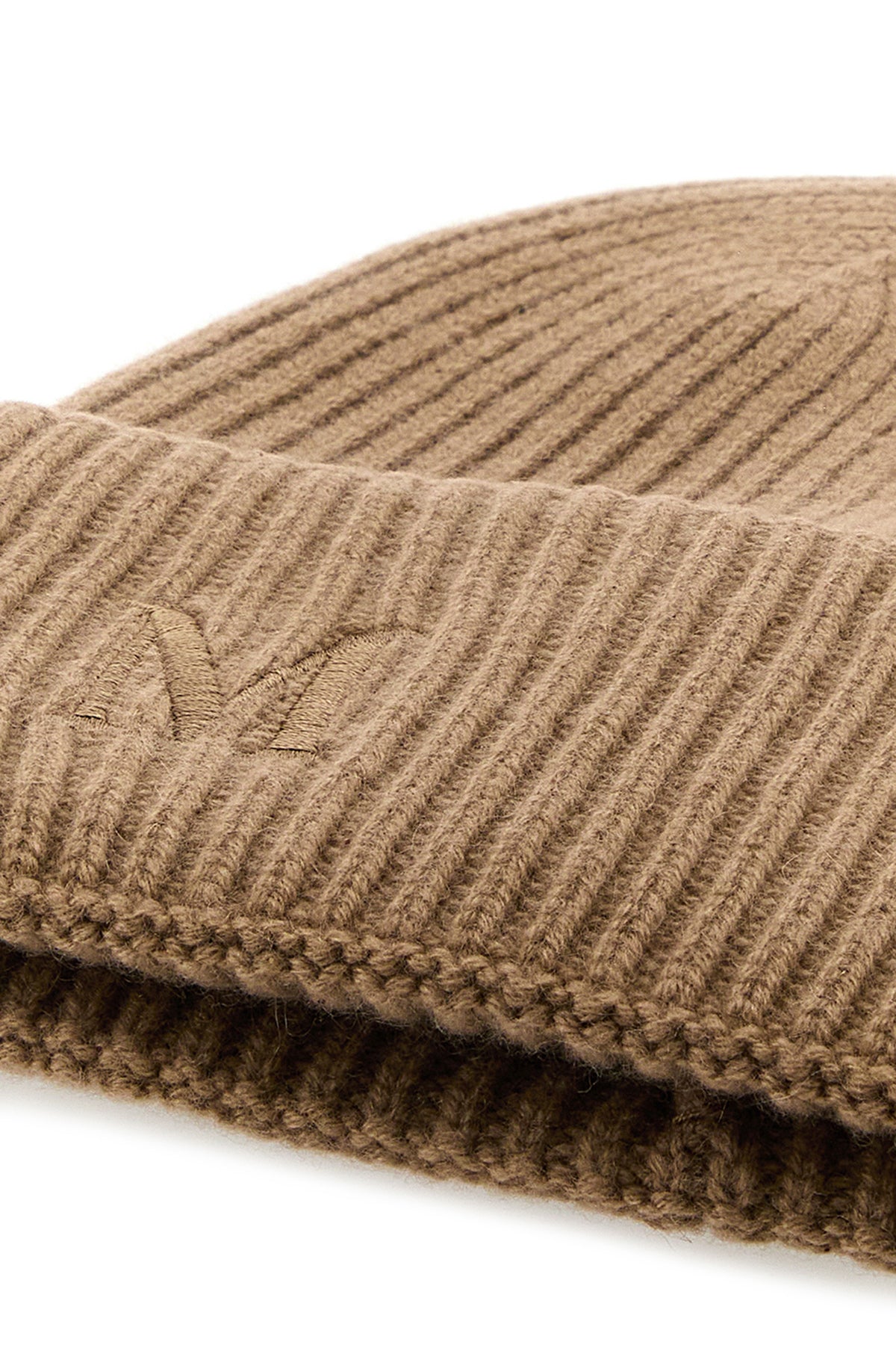 Beanie hat realized in pure cashmere characterized by embroidered logo on the hemline.
