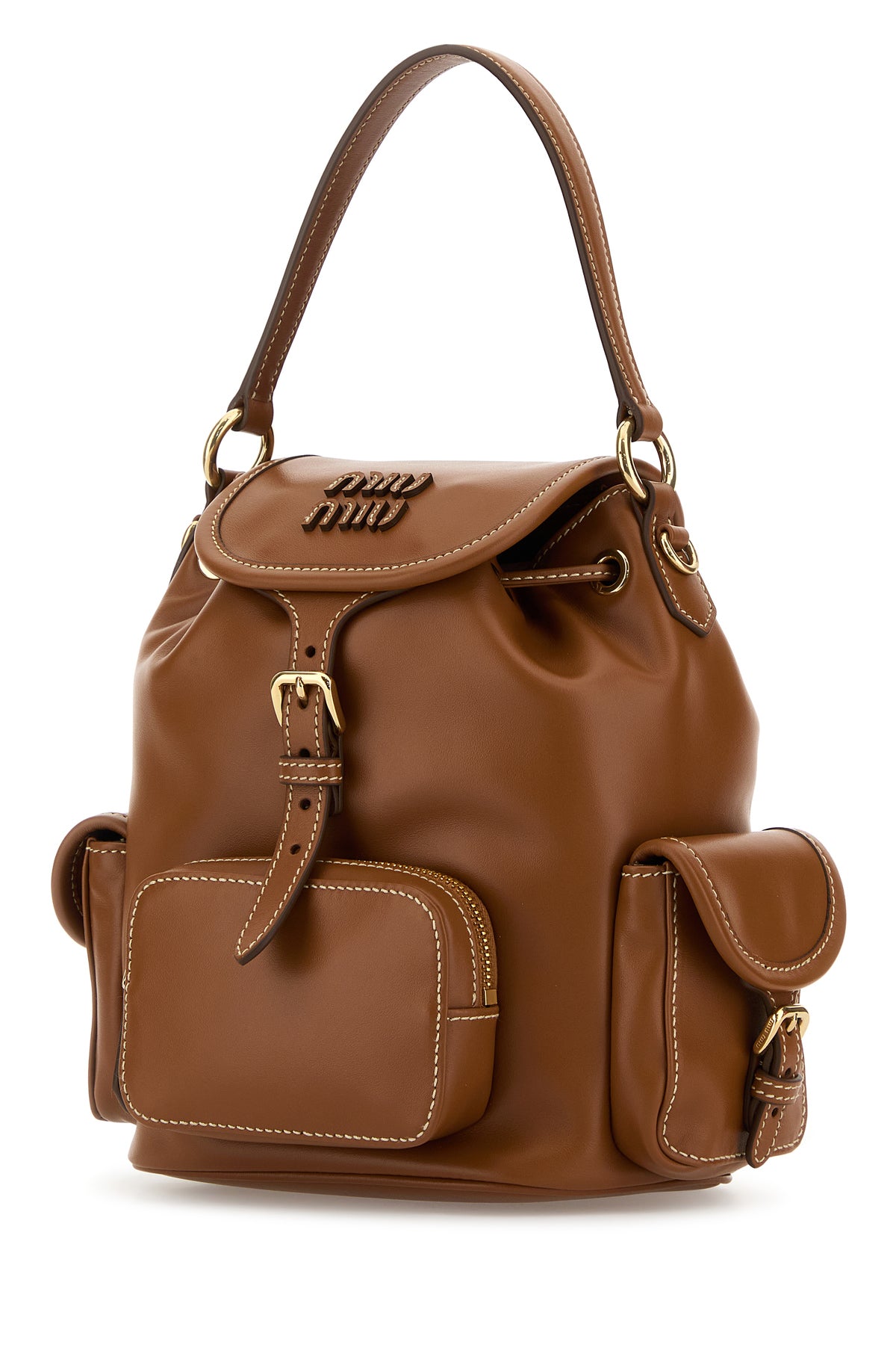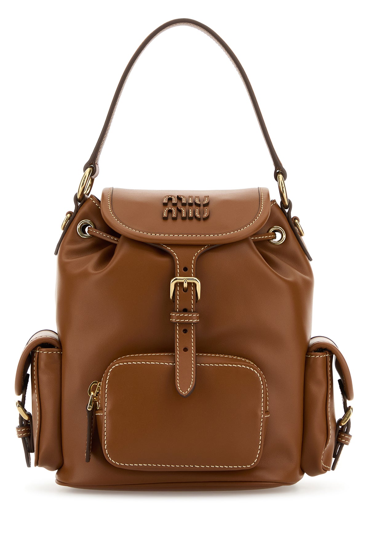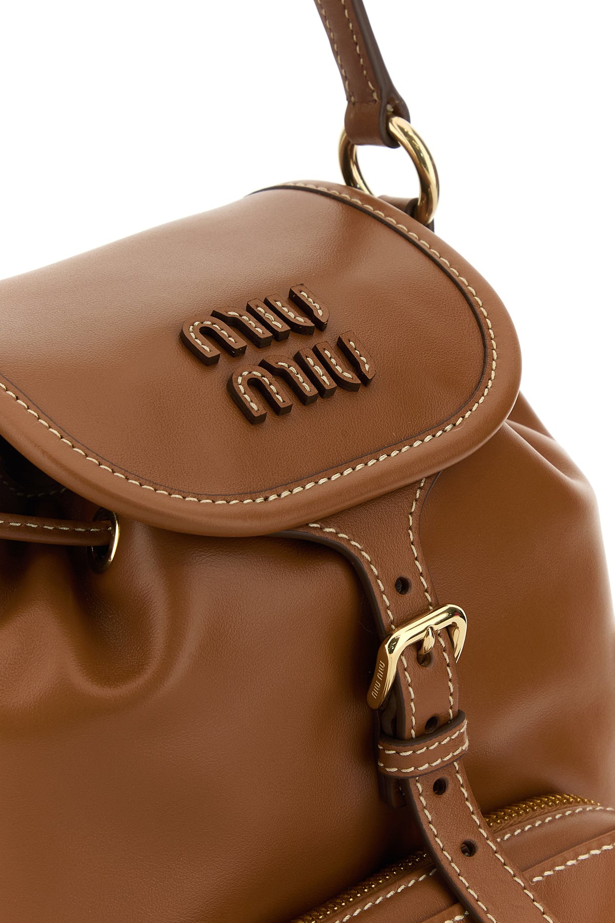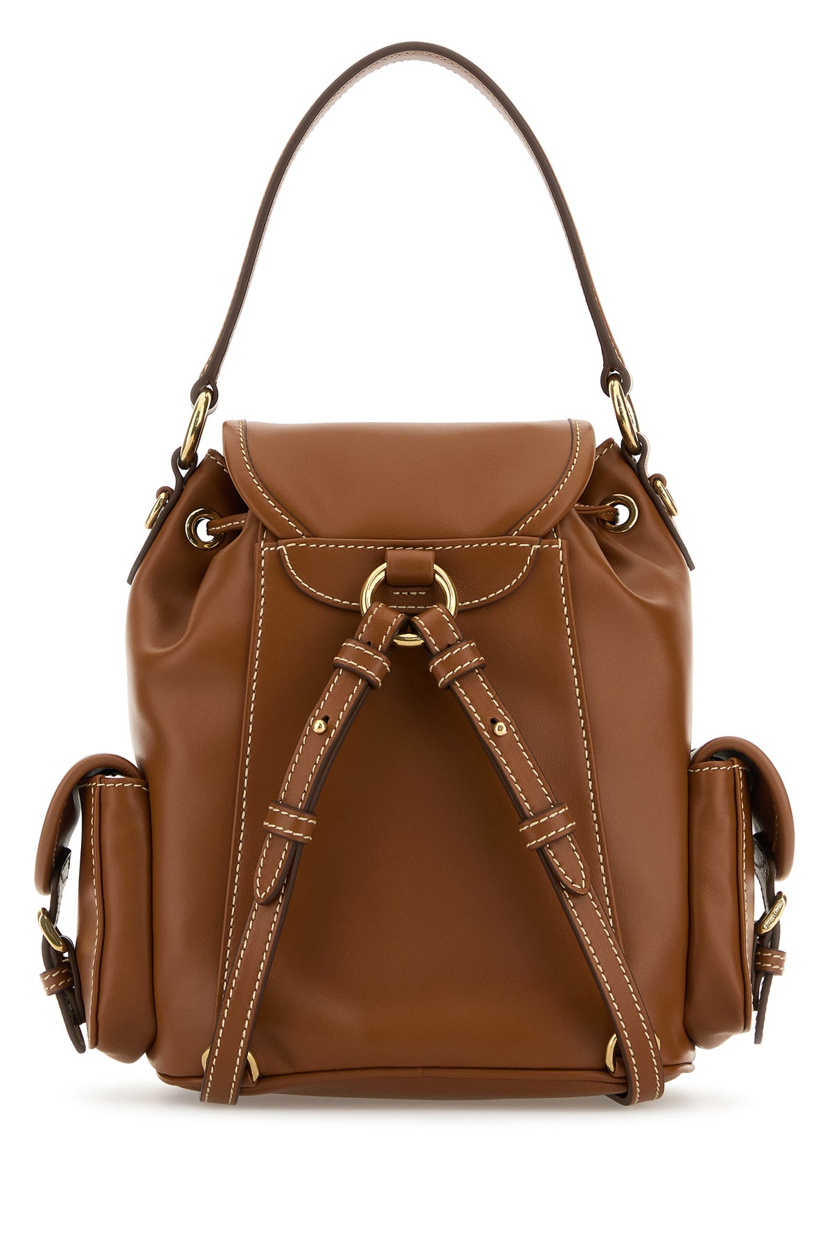 Backpack realized in slightly pebble leather enriched by tonal logoed label at the front.