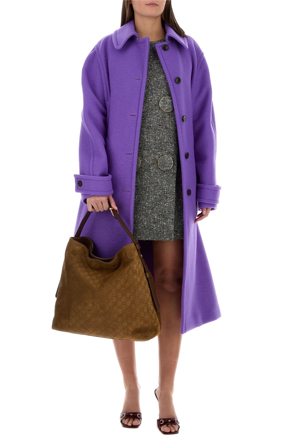 Shopping bag realized in suede characterized by embossed GG motif on the entire surface.
