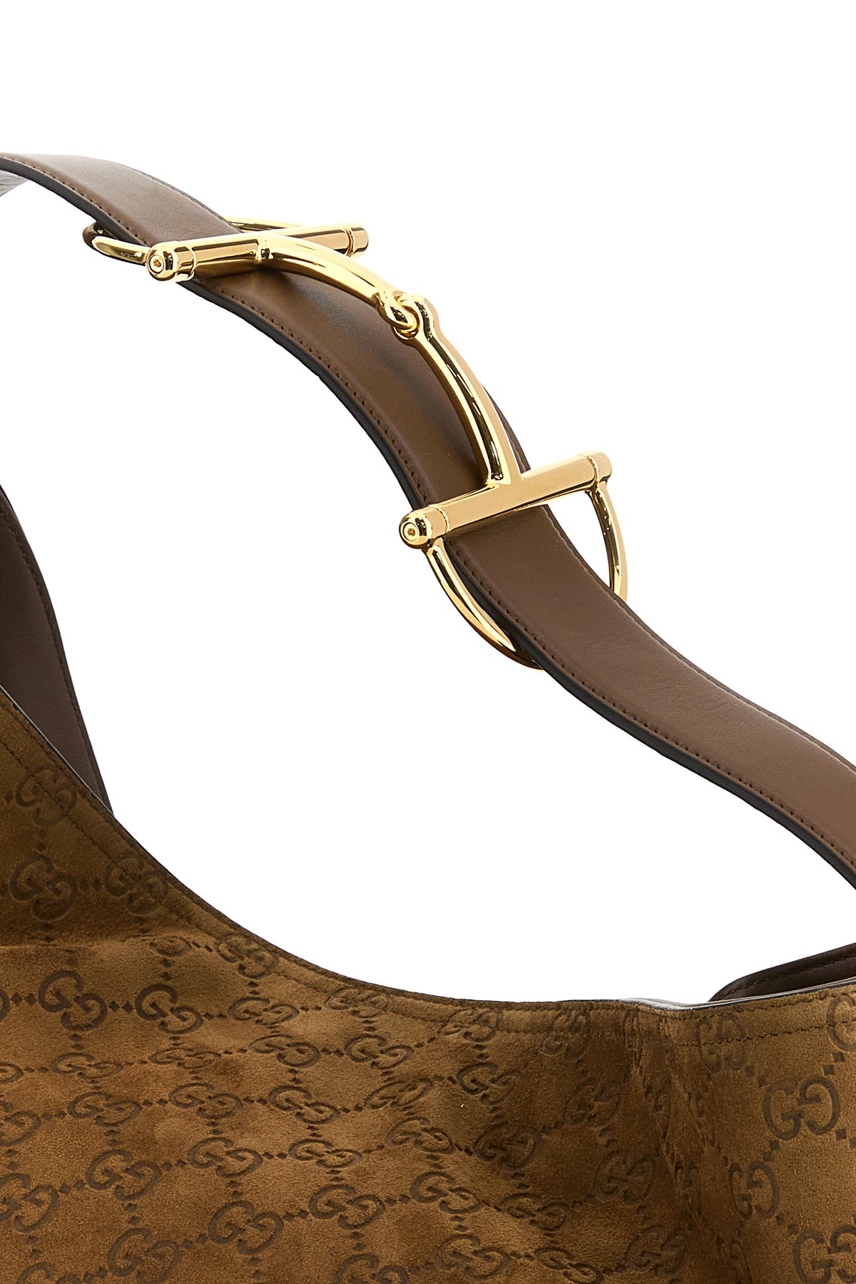 - Adjustable tonal leather shoulder strap with Horsebit metal detail
