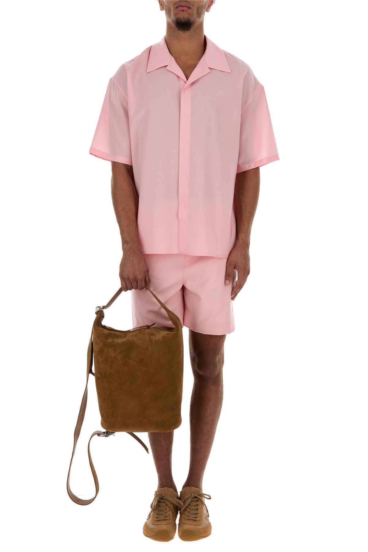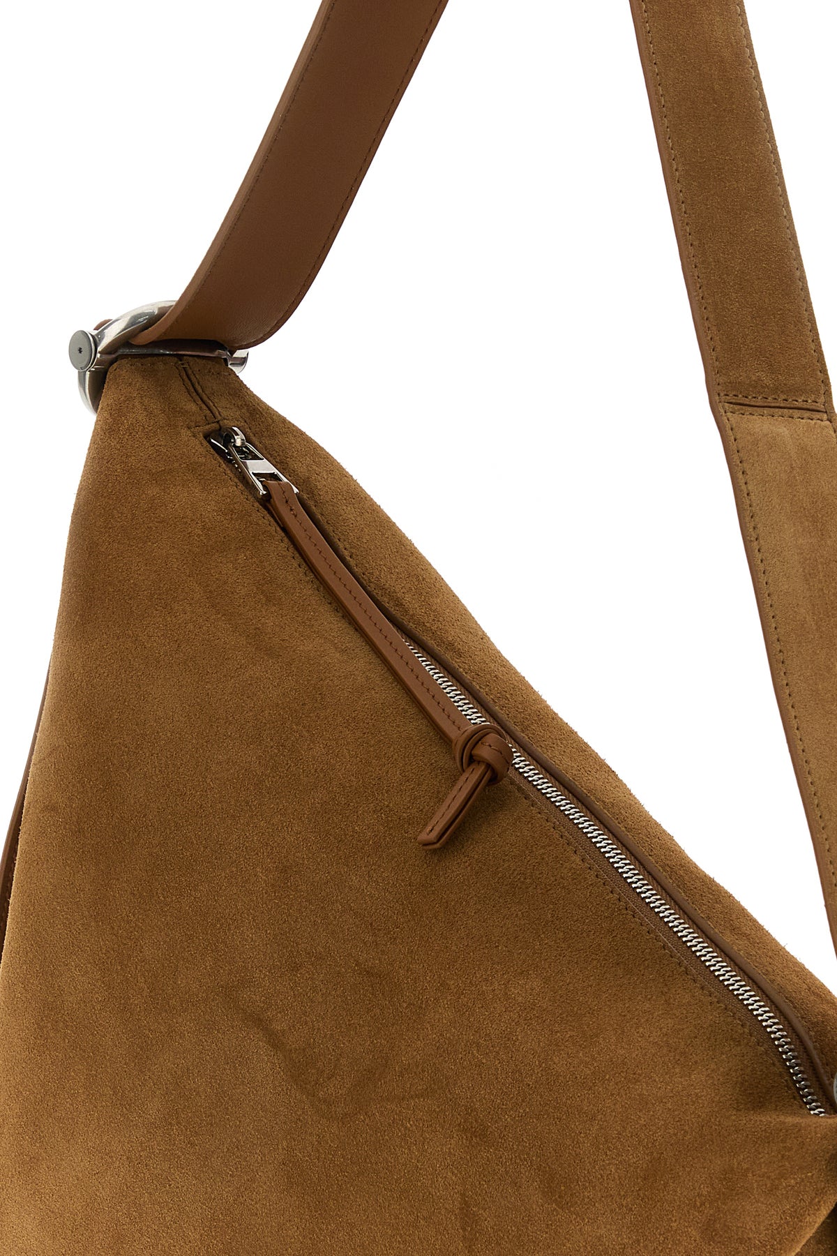 Bucket bag realized in suede characterized by embossed logo at the front.