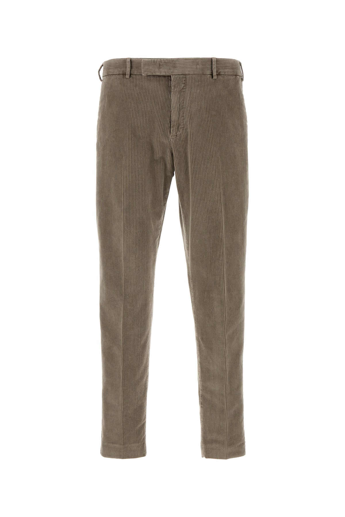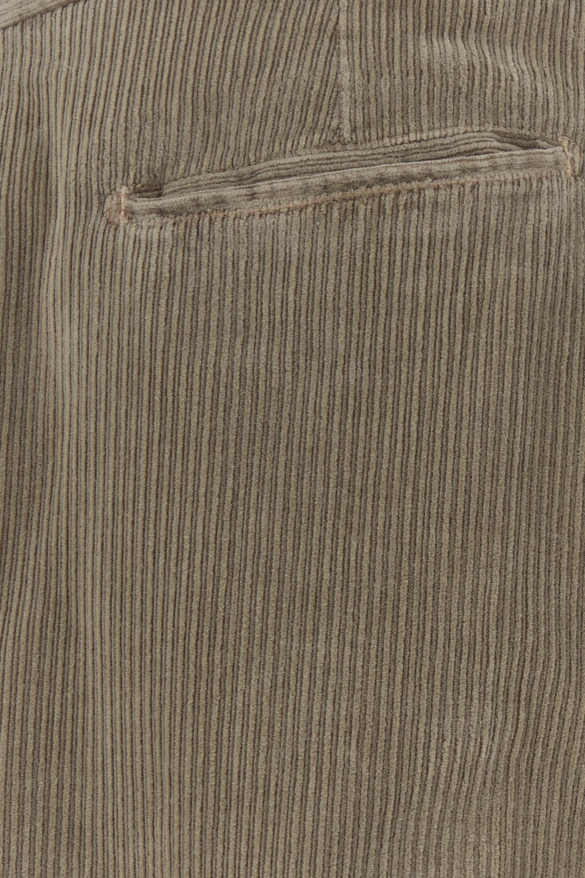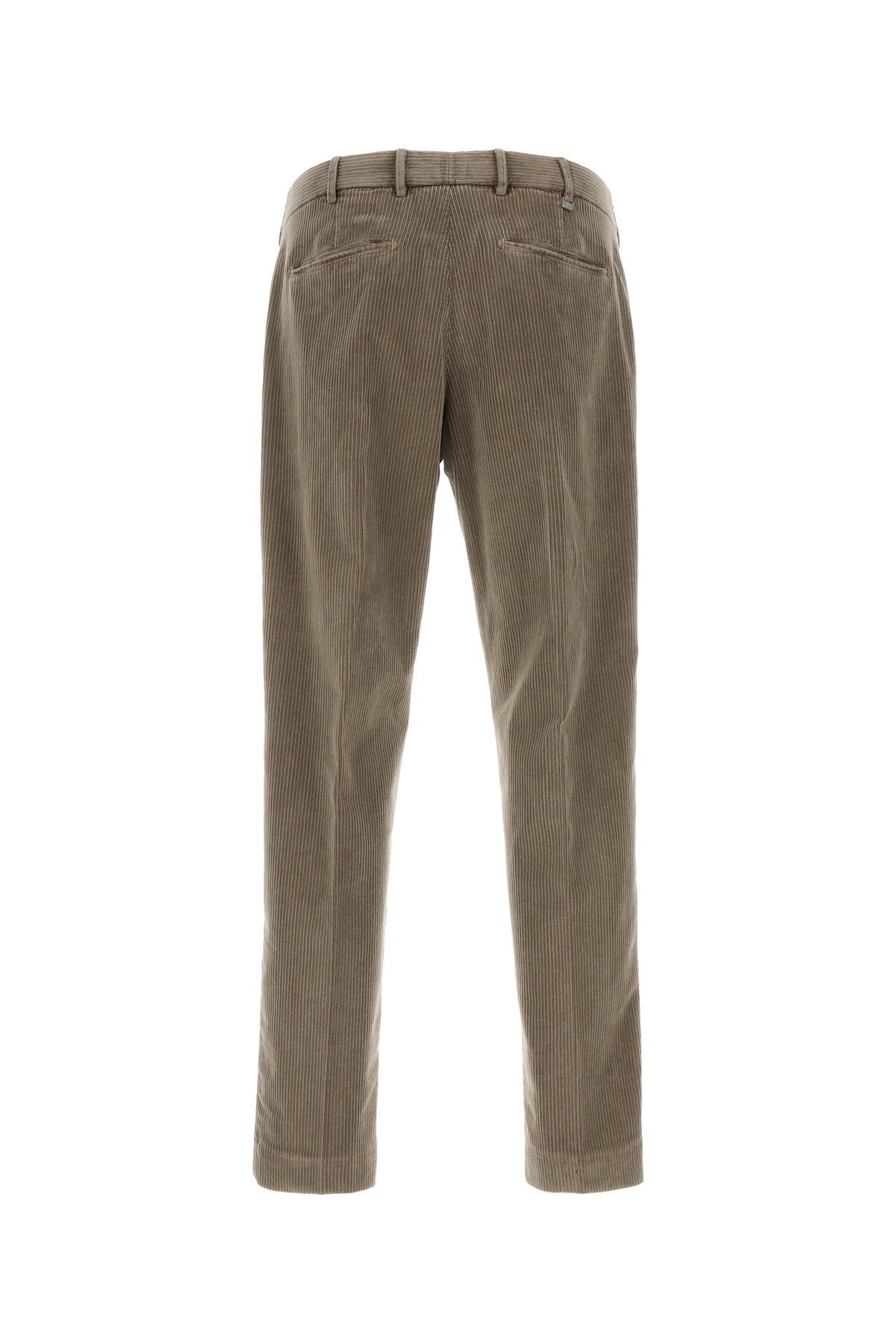 Pant realized in stretch cotton blend corduroy characterized by central ironed pleats.