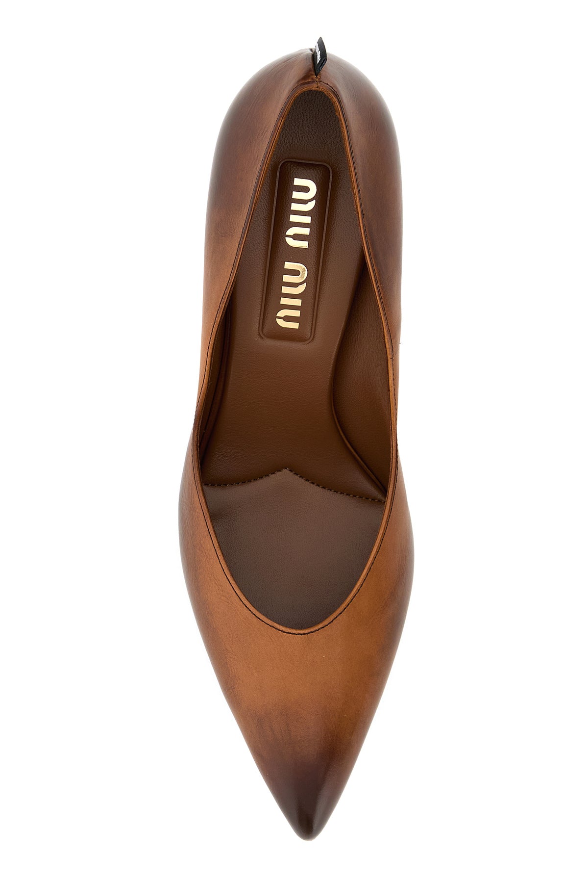 Pumps realized in vintage effect leather enriched by logoed label on the heel.