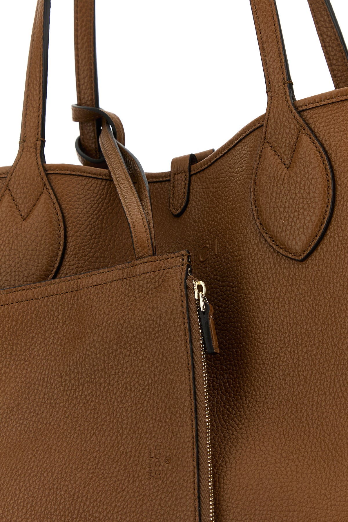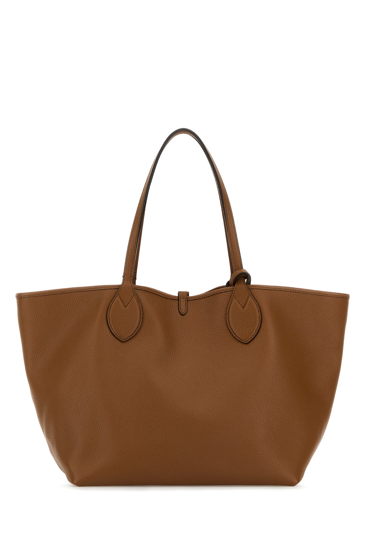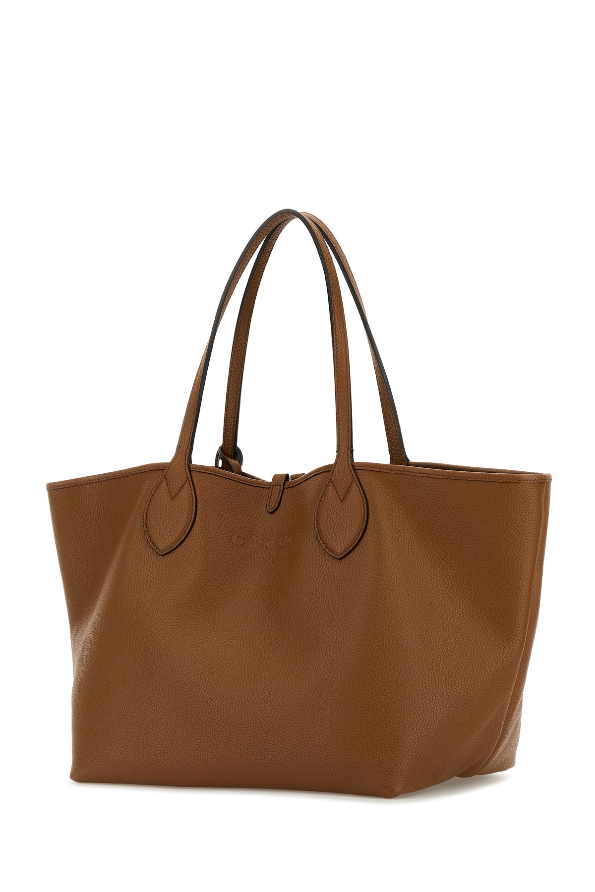 Reversible shopping bag realized in pebble leather characterized by logo in relief at the front.