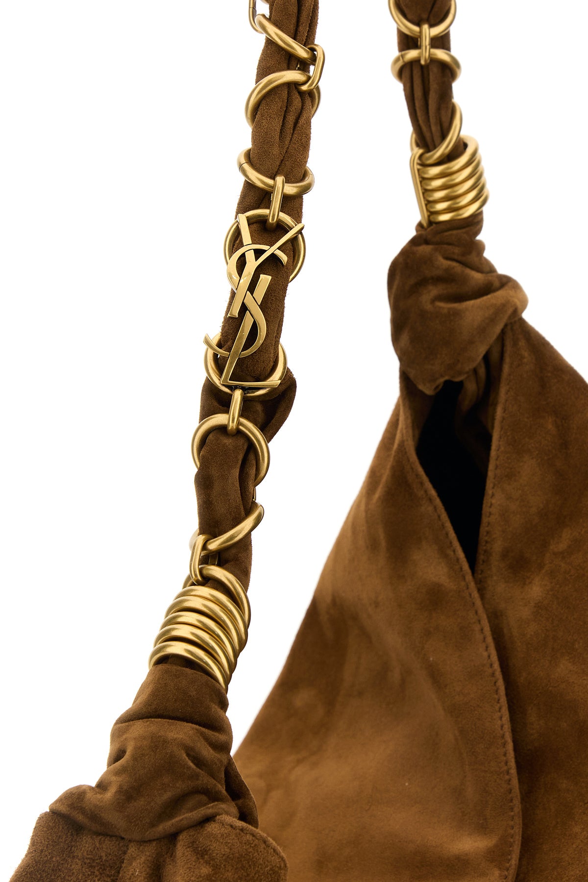 Shopping bag realized in suede enriched by jewel chain with metal iconic Monogram detail on the handle.