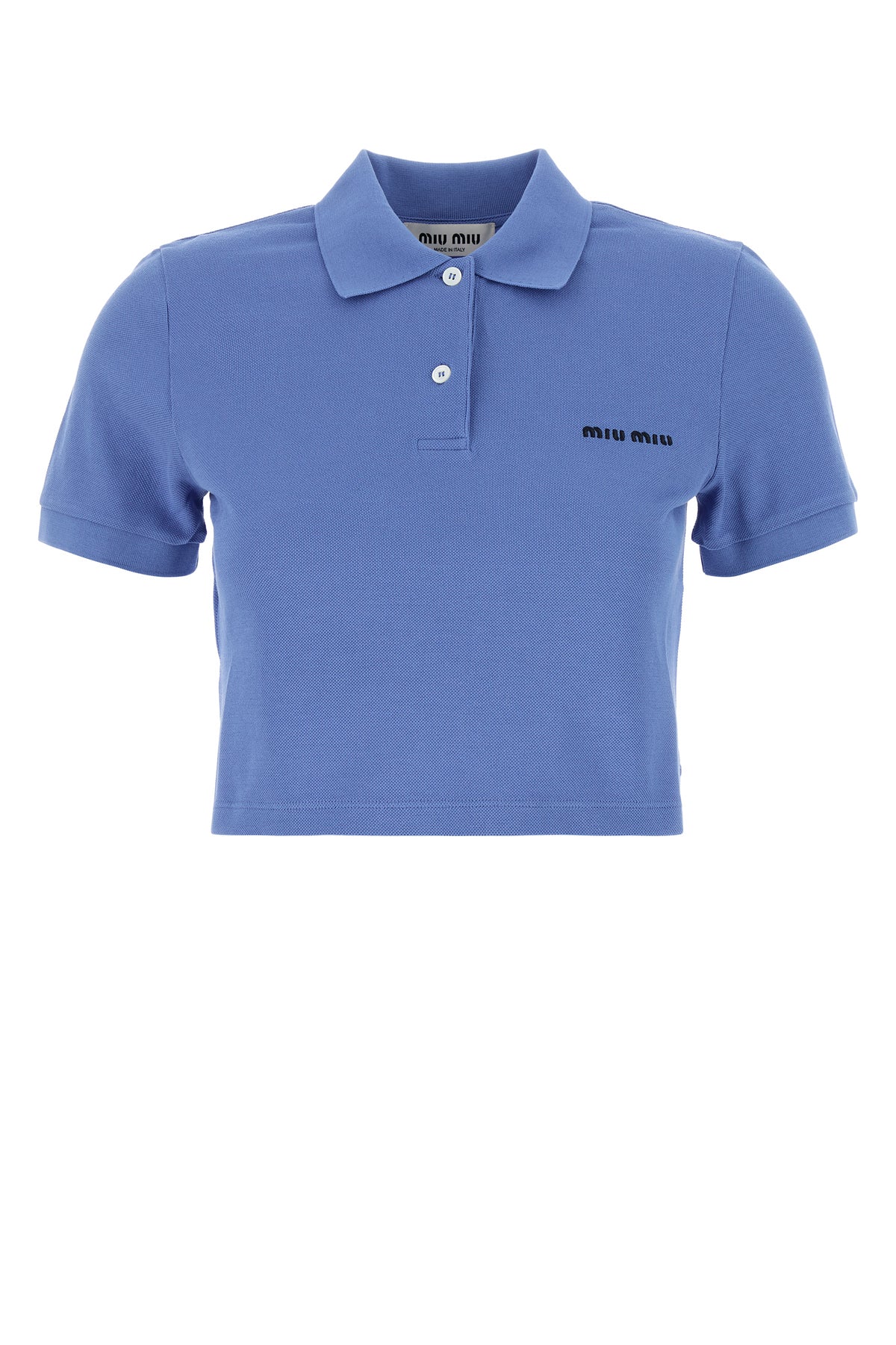 Short-cut polo shirt realized in pure cotton piquet characterized by contrasting embroidered logo on the chest.