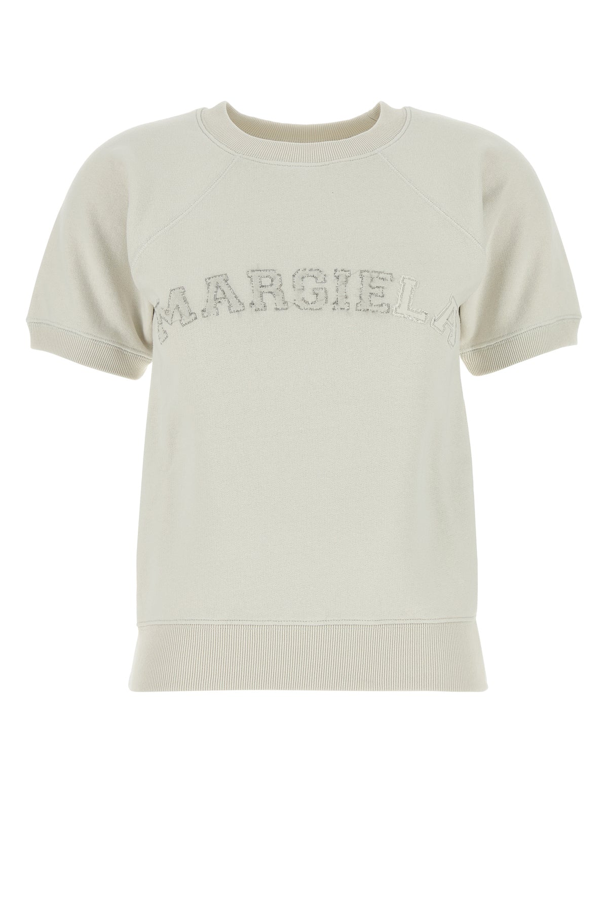 Short-sleeves sweatshirt realized in pure cotton charactered by contrasting embroidered logo on the chest.