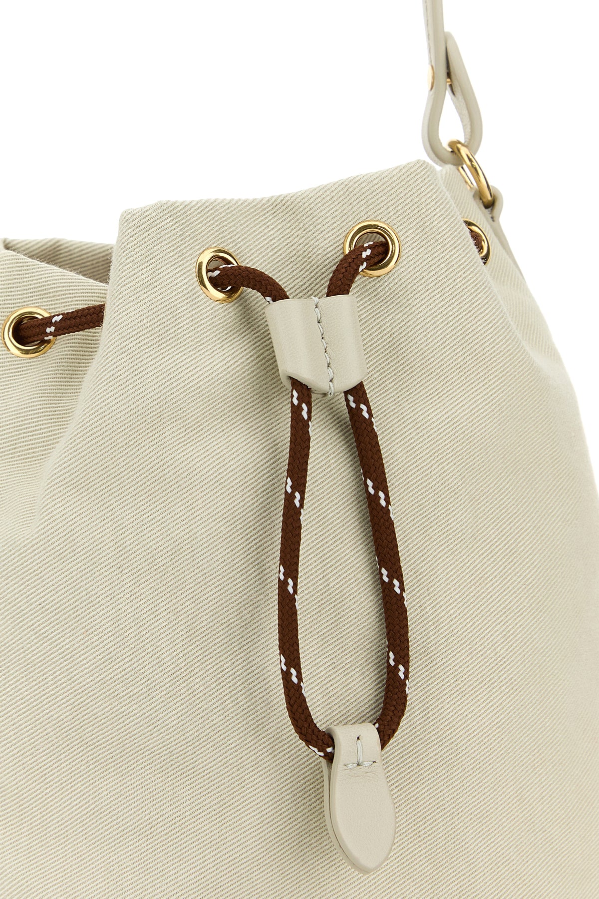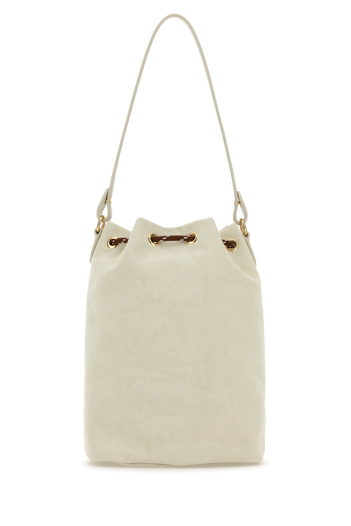 Bucket bag realized in gabardine characterized by tonal embroidered logo at the front.