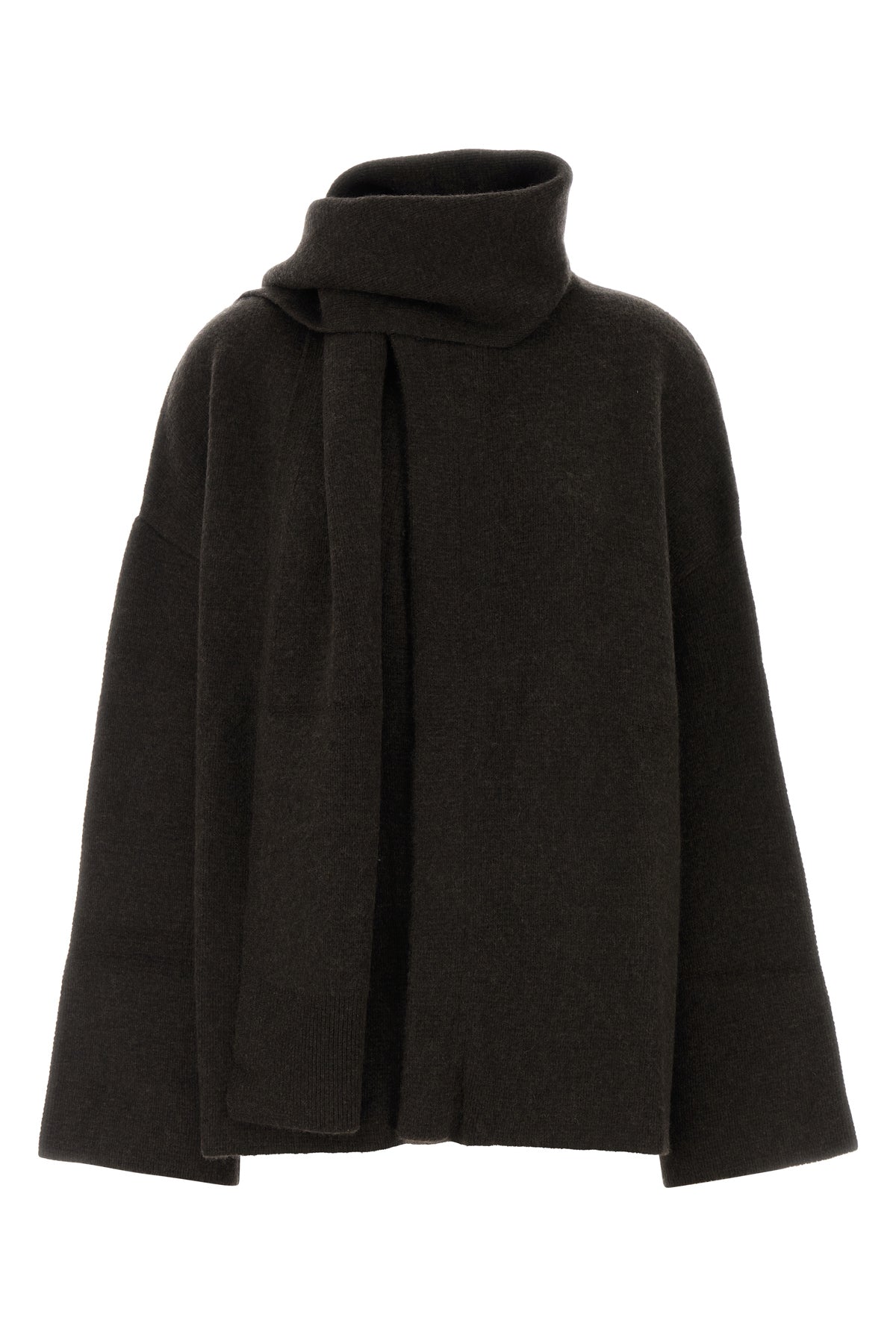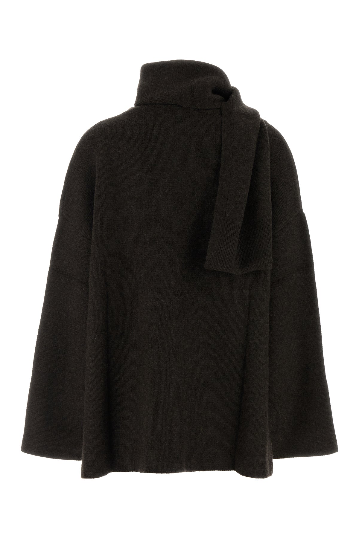 Cardigan realized in pure organic cashmere characterized by tonal fabric bands at the neck.