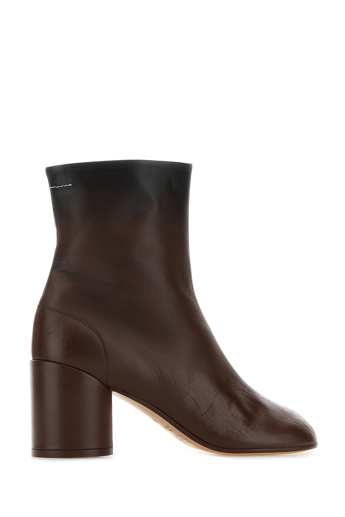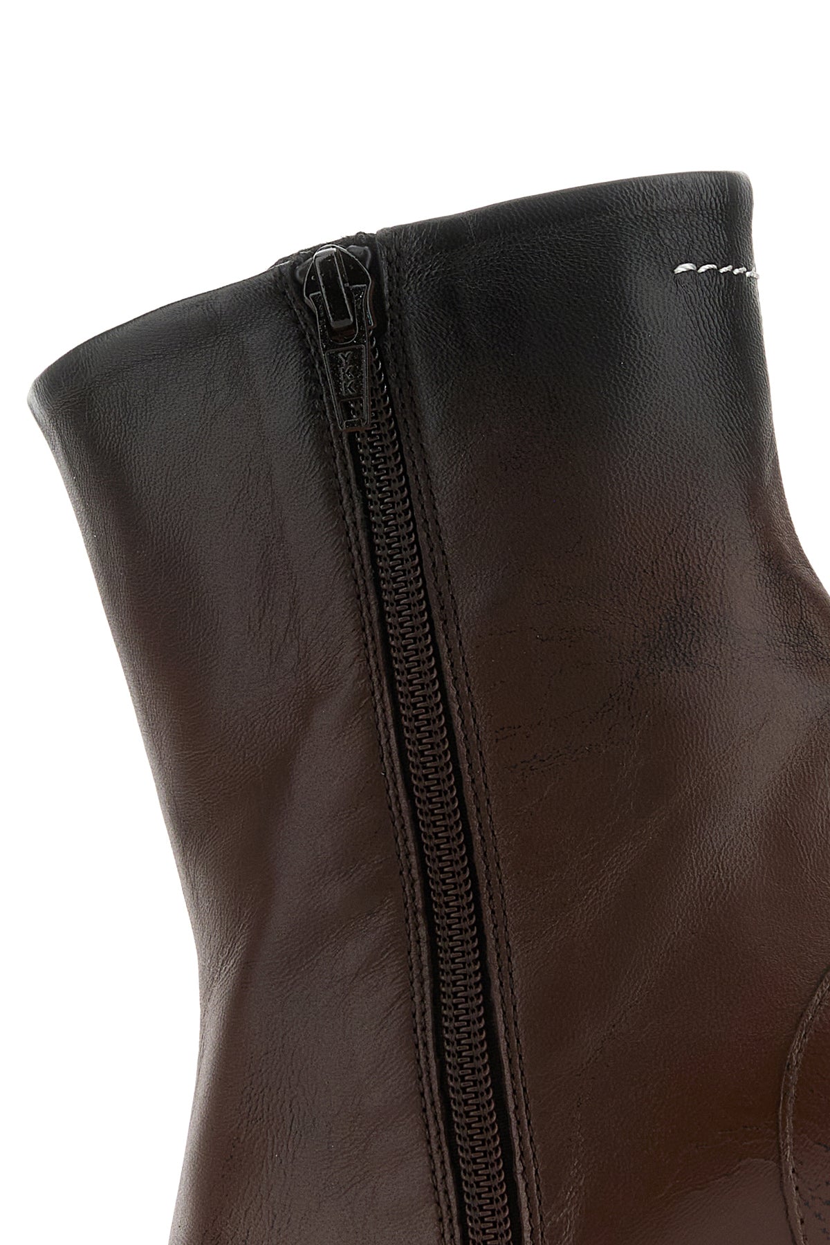 Ankle boots realized in craquele leather characterized by iconic contrasting stitching at the back.