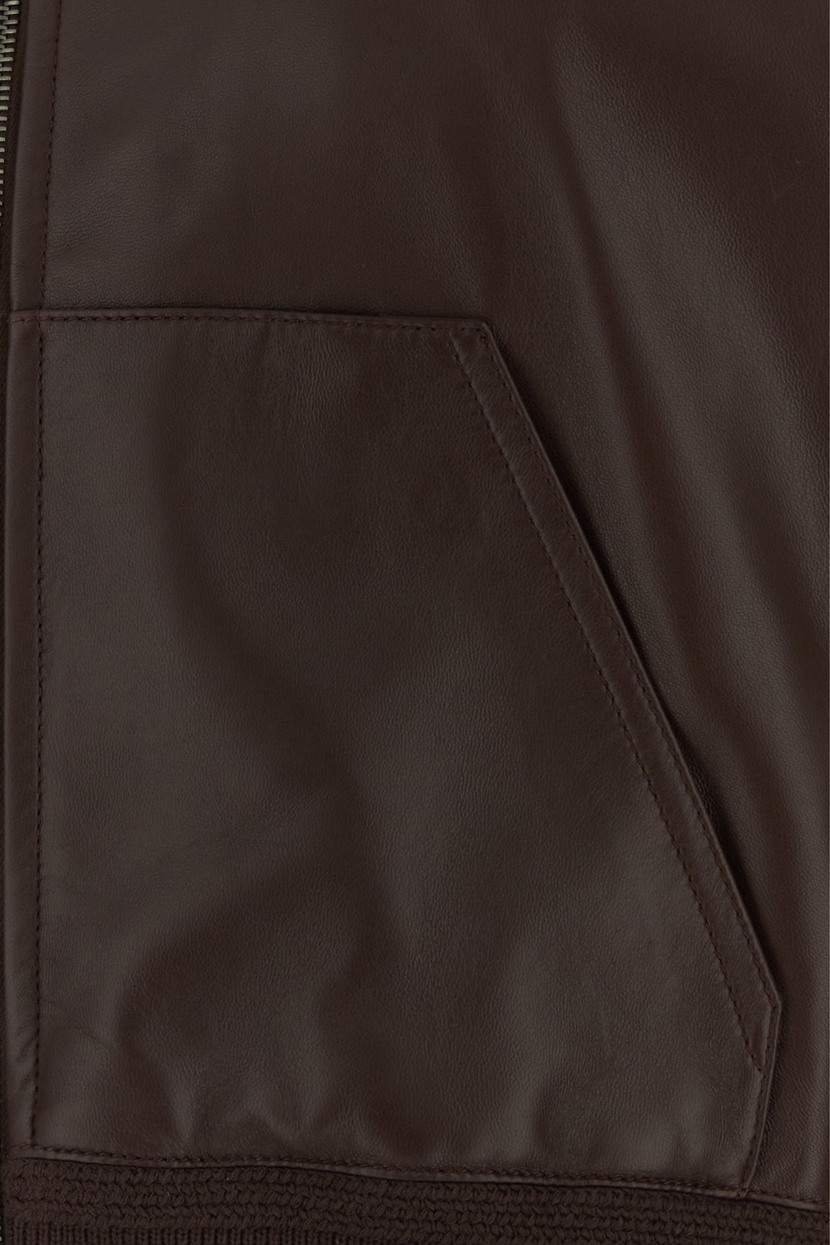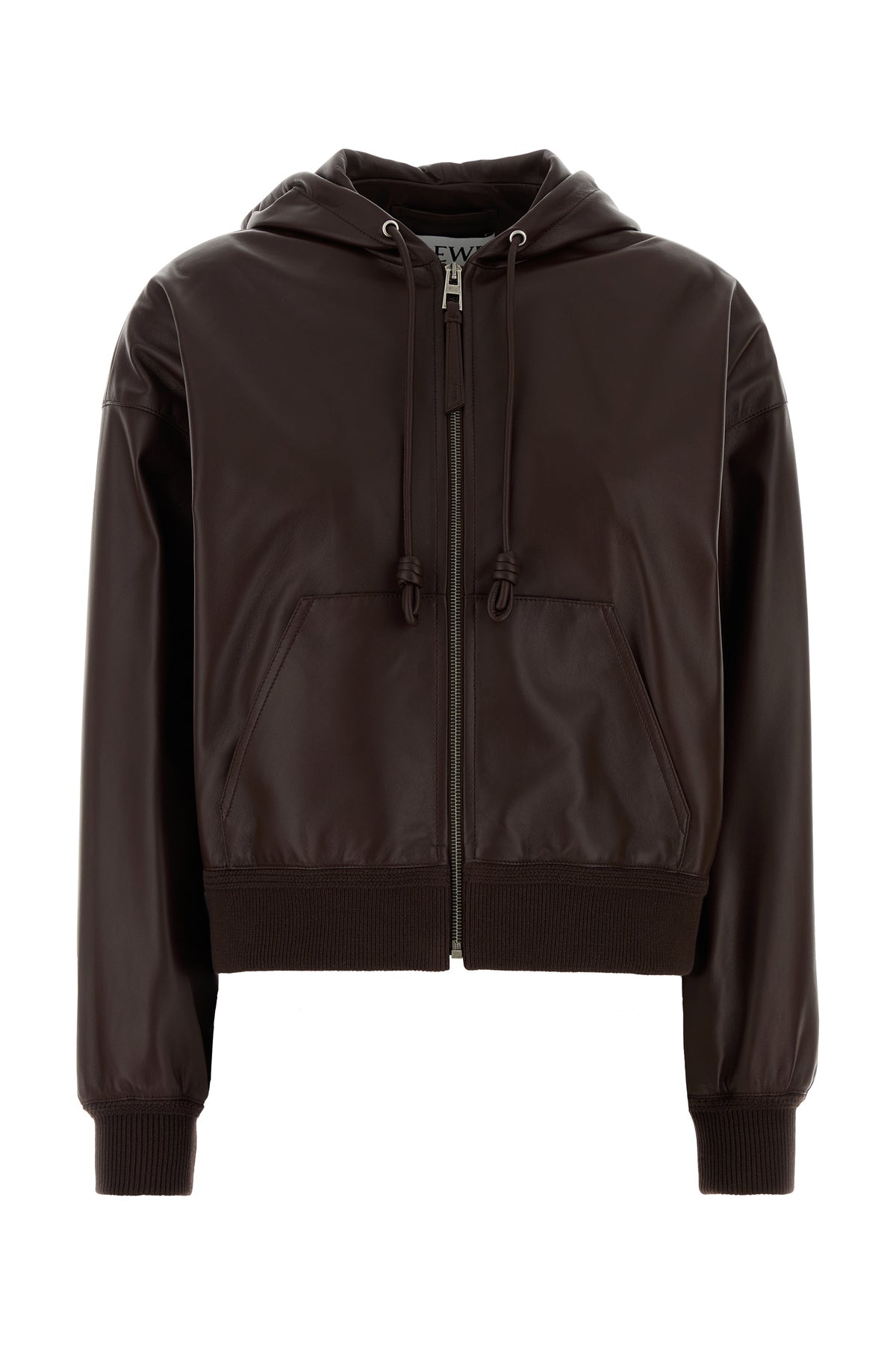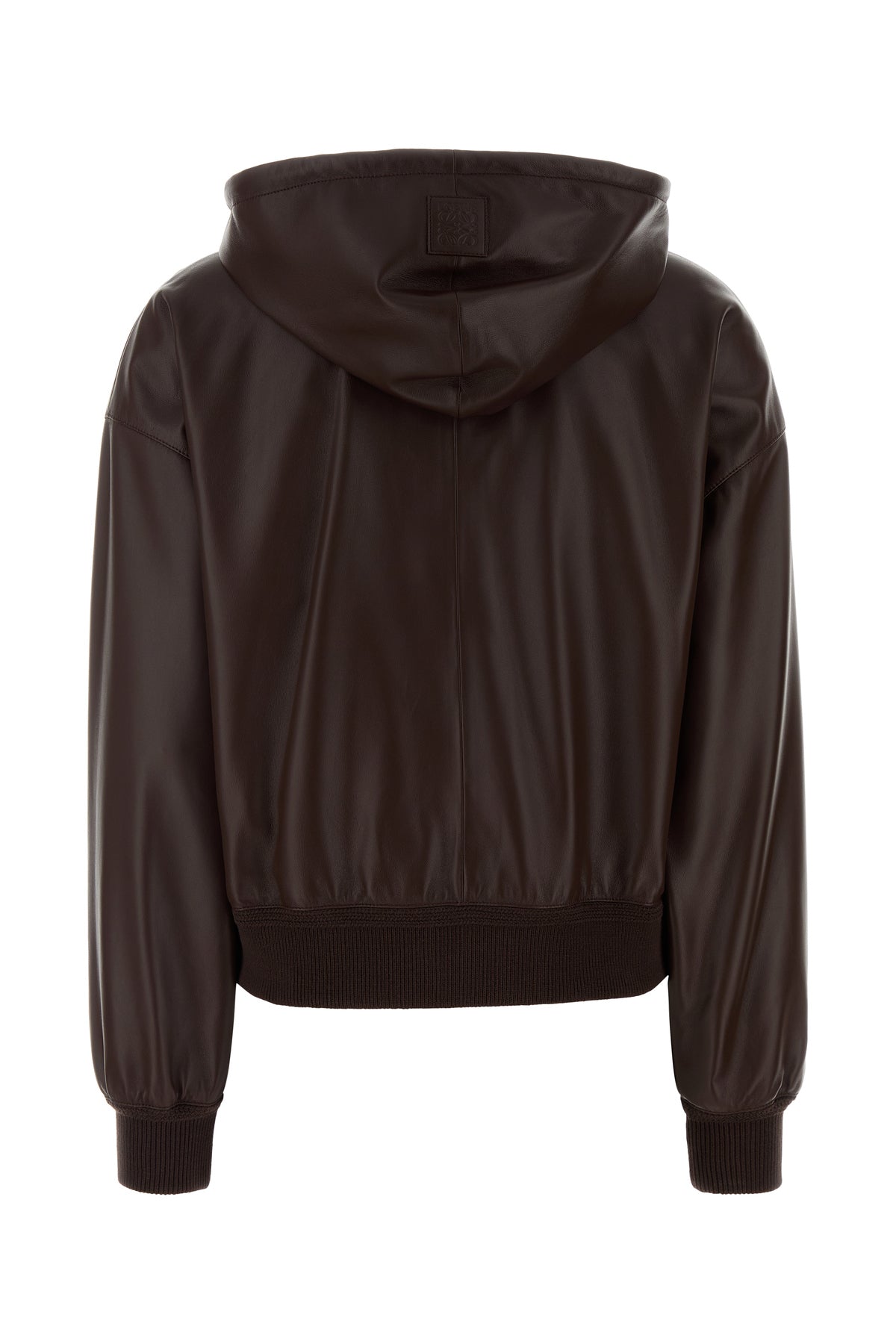 Jacket realized in lamb leather enriched by tonal leather Anagram LOEWE patch on the hood.