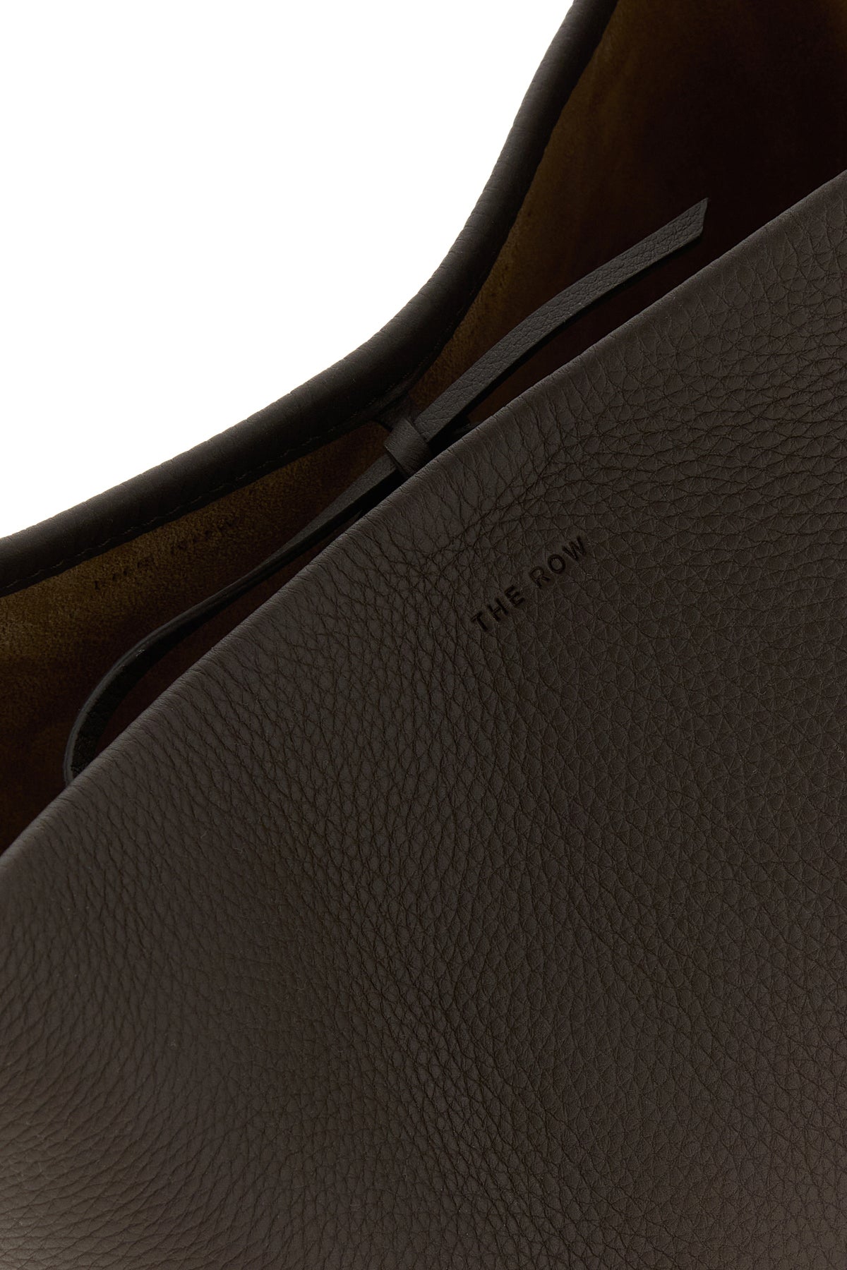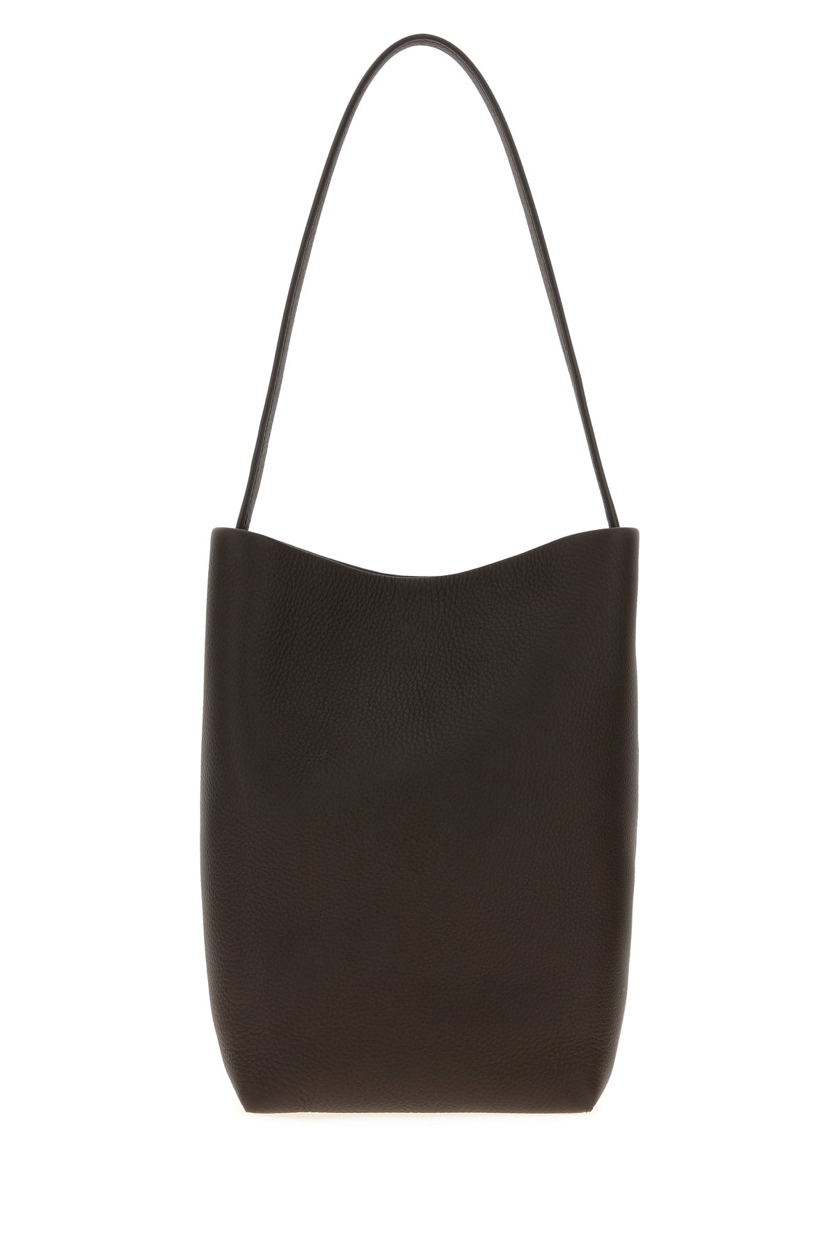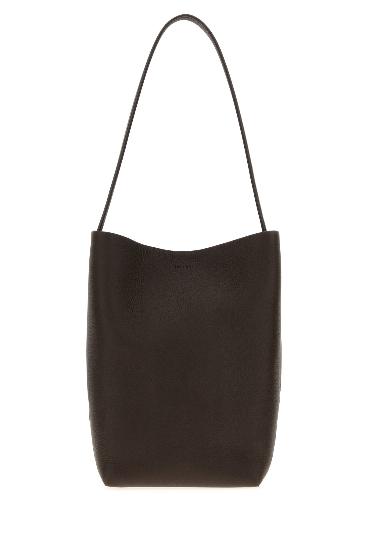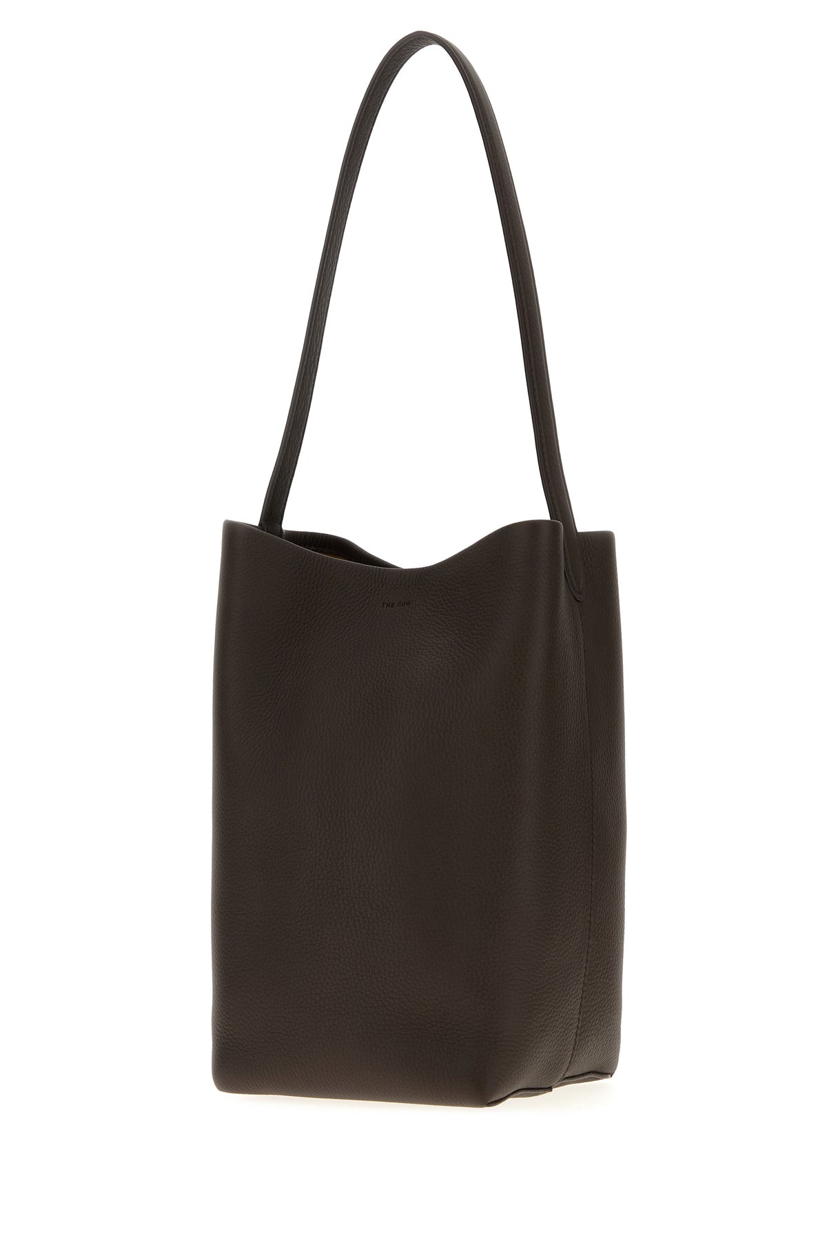 Shopping bag realized in pebble leather characterized by embossed logo at the front.