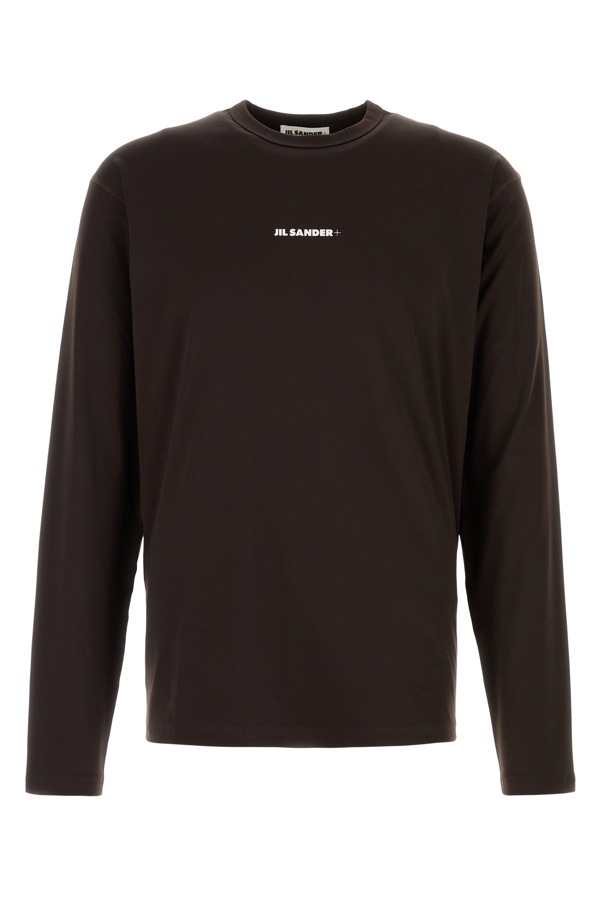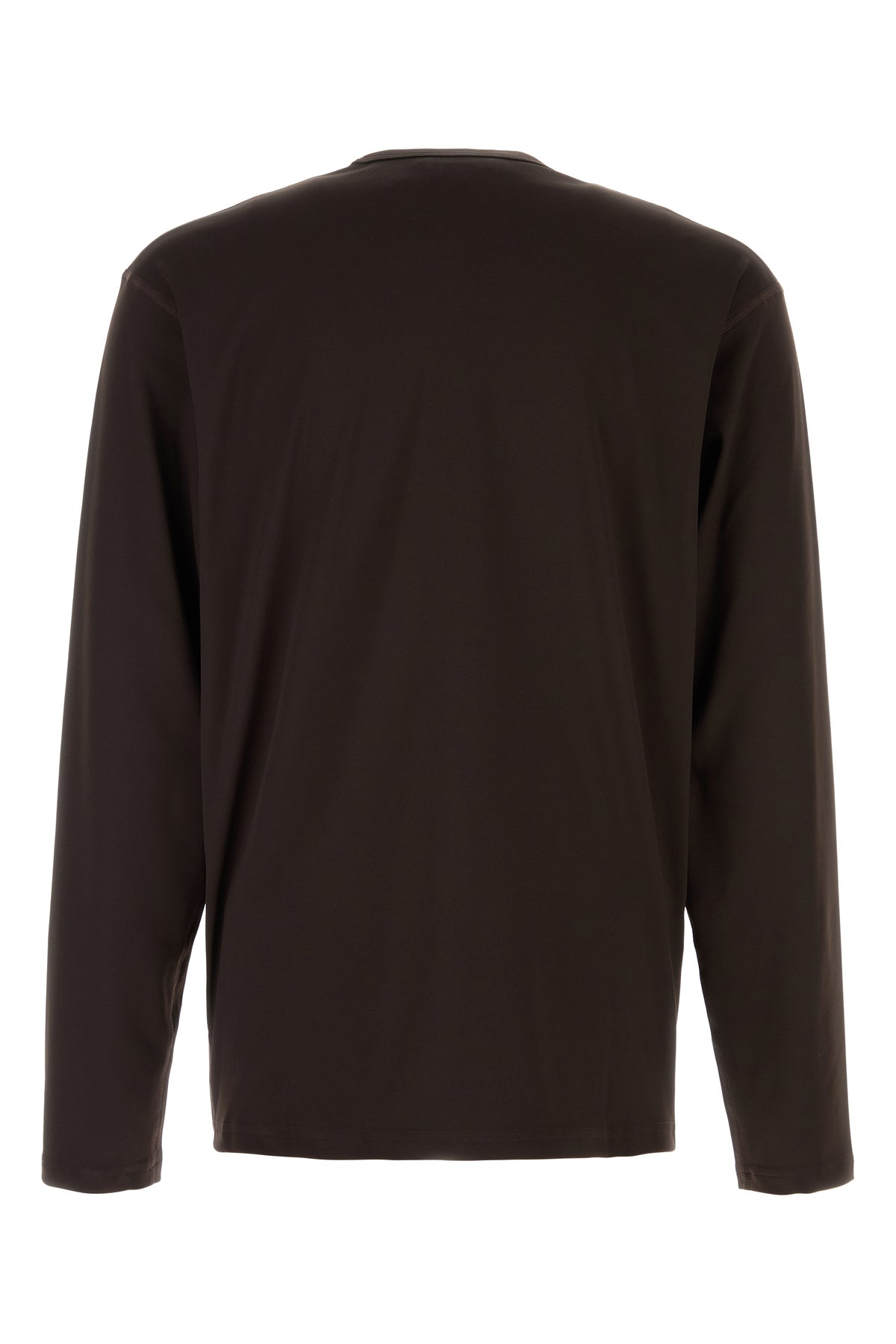 Long-sleeve t-shirt realized in stretch polyester characterized by contrasting printed logo at the front.