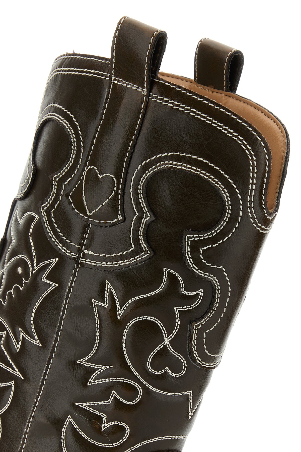 Boots realized in synthetic leather characterized by contrasting peculiar embroideries on the entire surface.