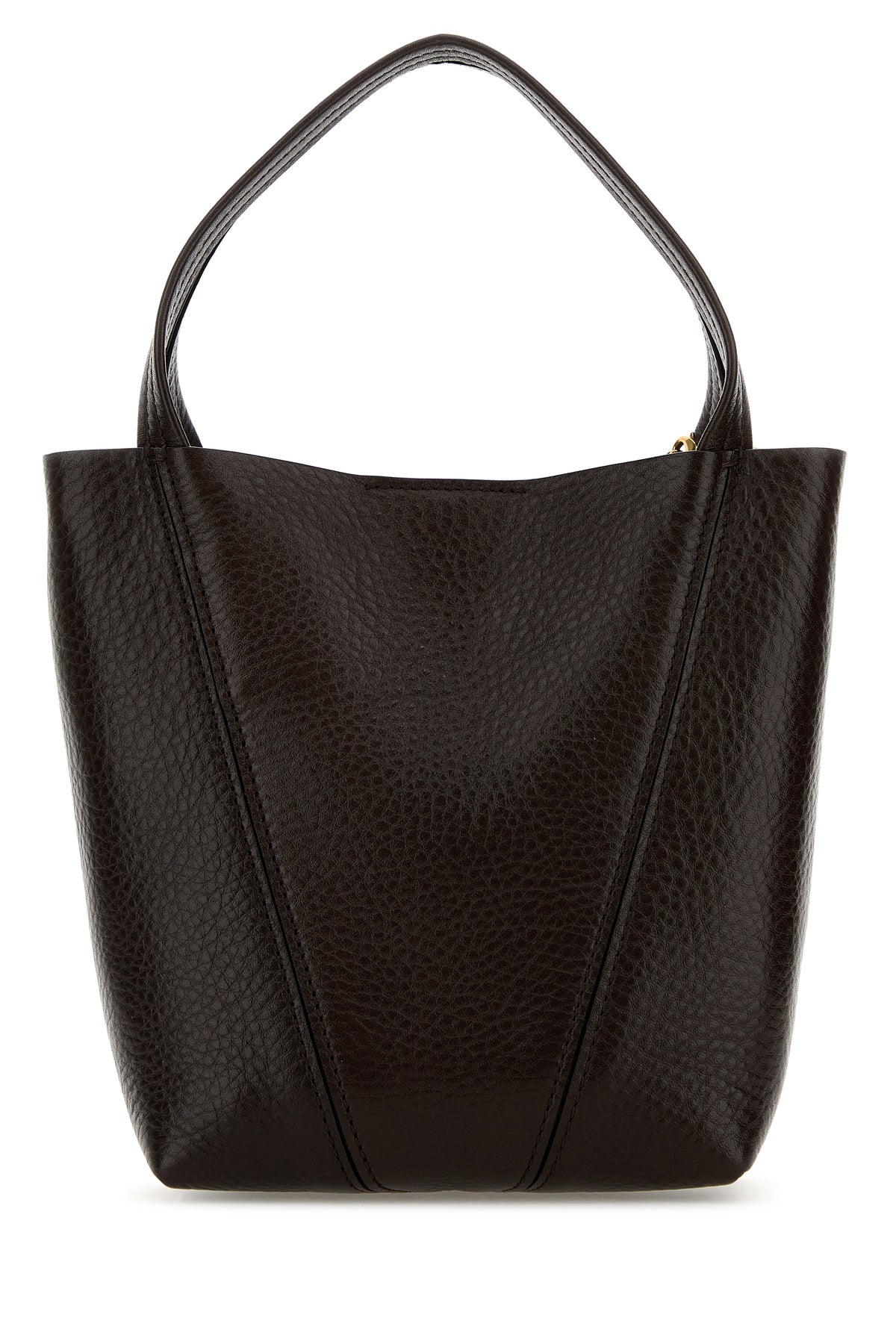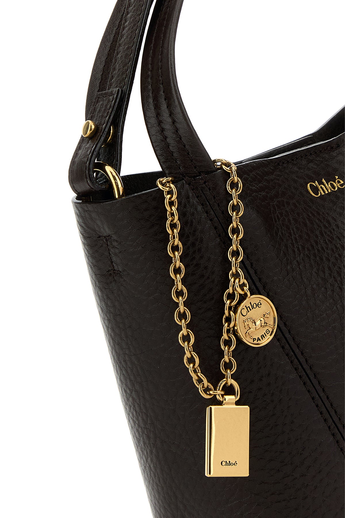 Shopping bag realized in pebble calf leather characterized by laminated printed logo at the front enriched by detachable metal accessory with logoed charms.