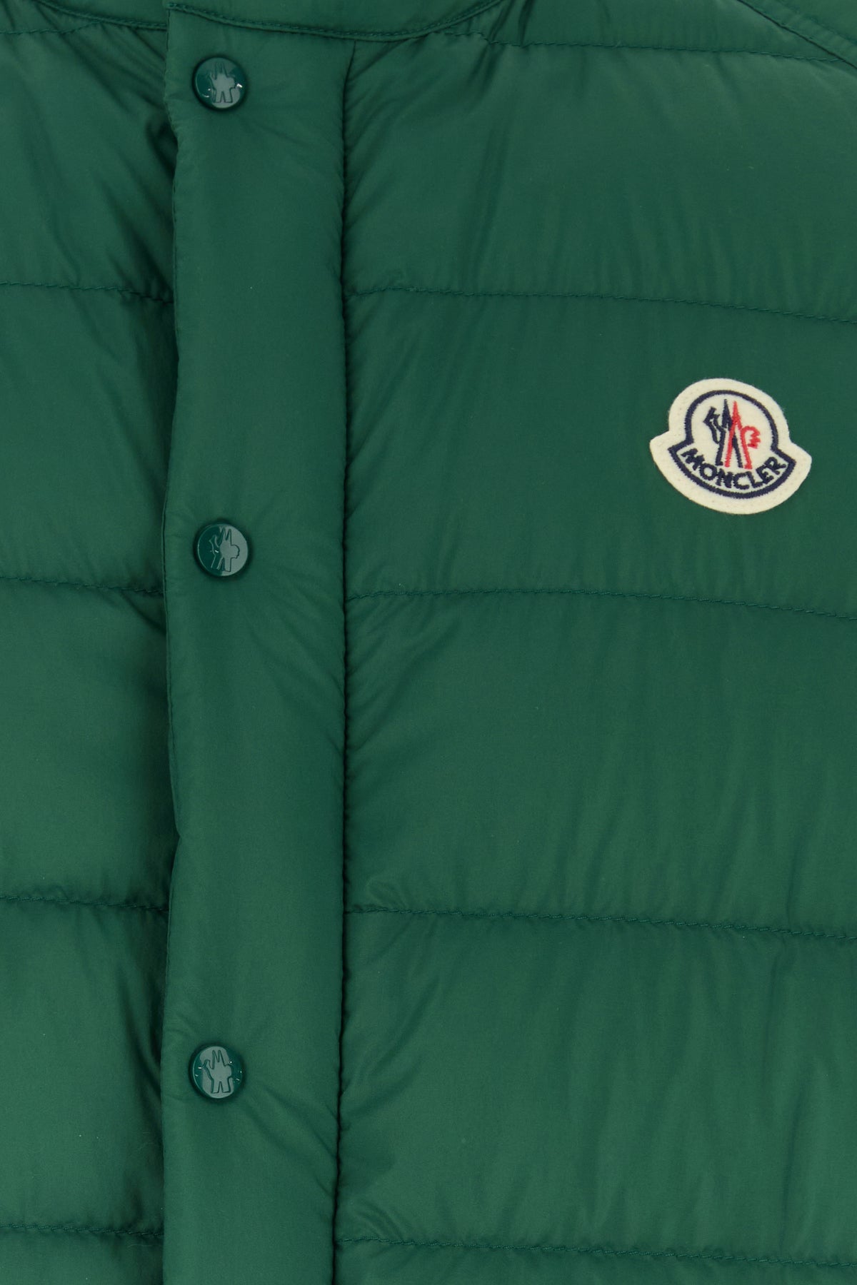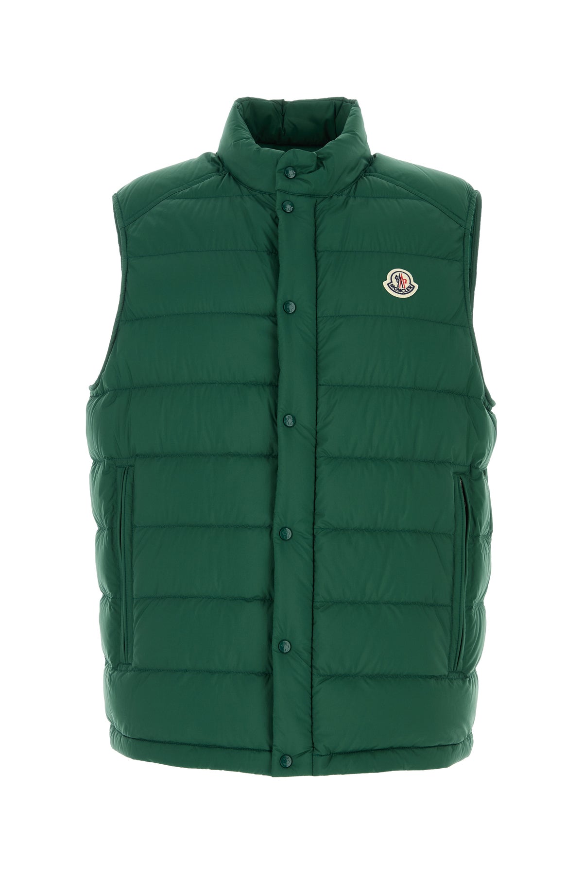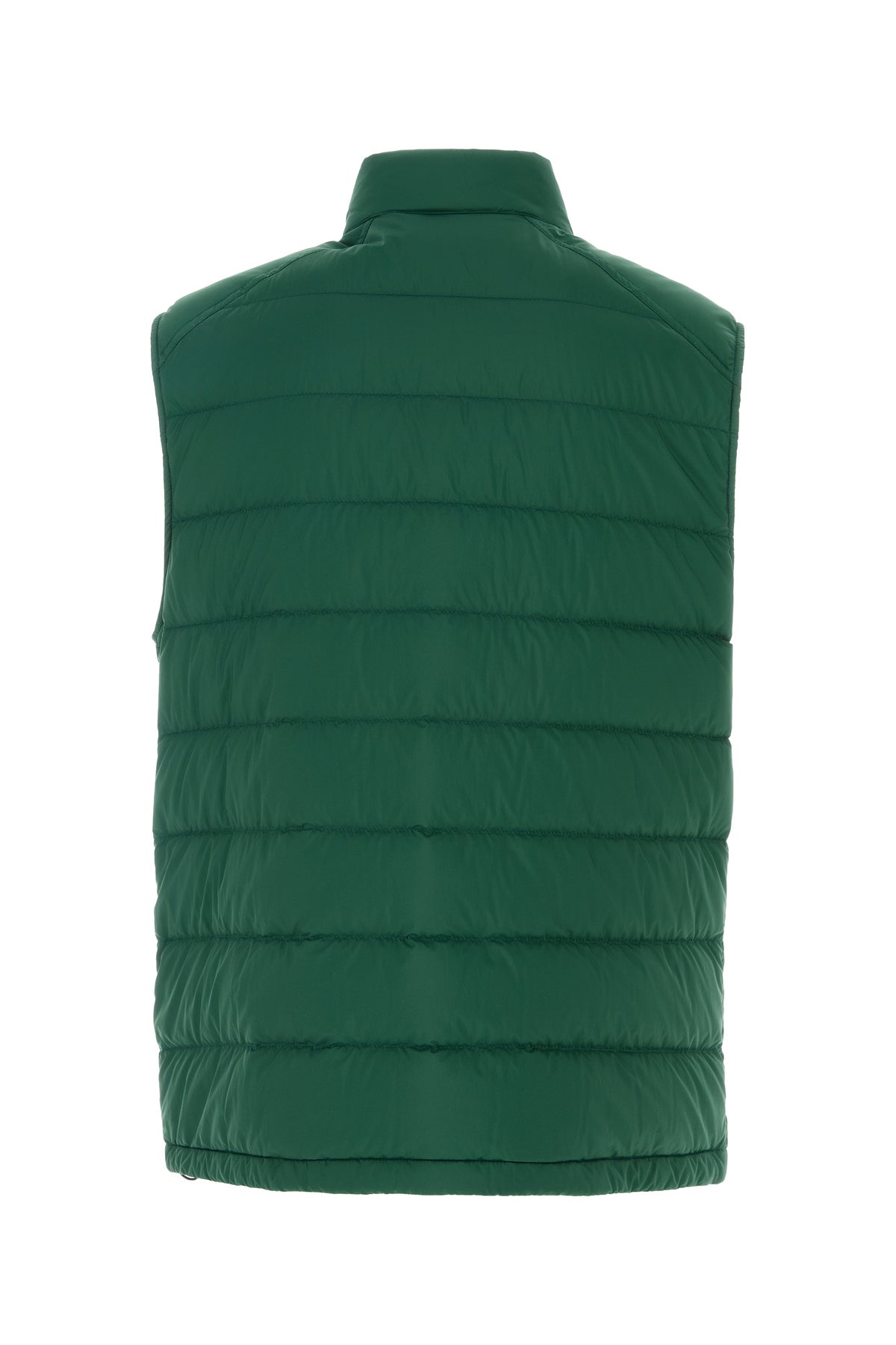 Sleeveless down jacket realized in quilted nylon enriched by contrasting logoed patch on the chest.